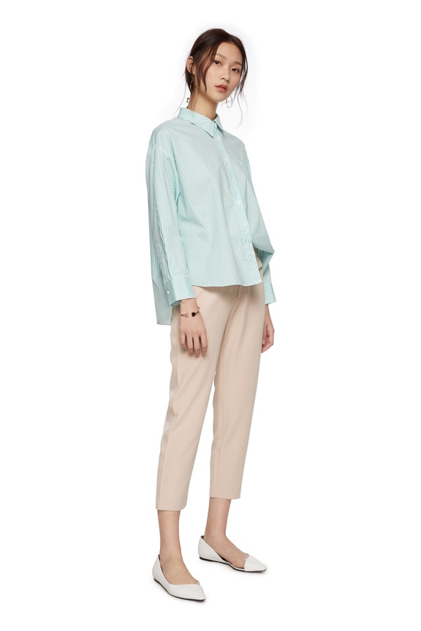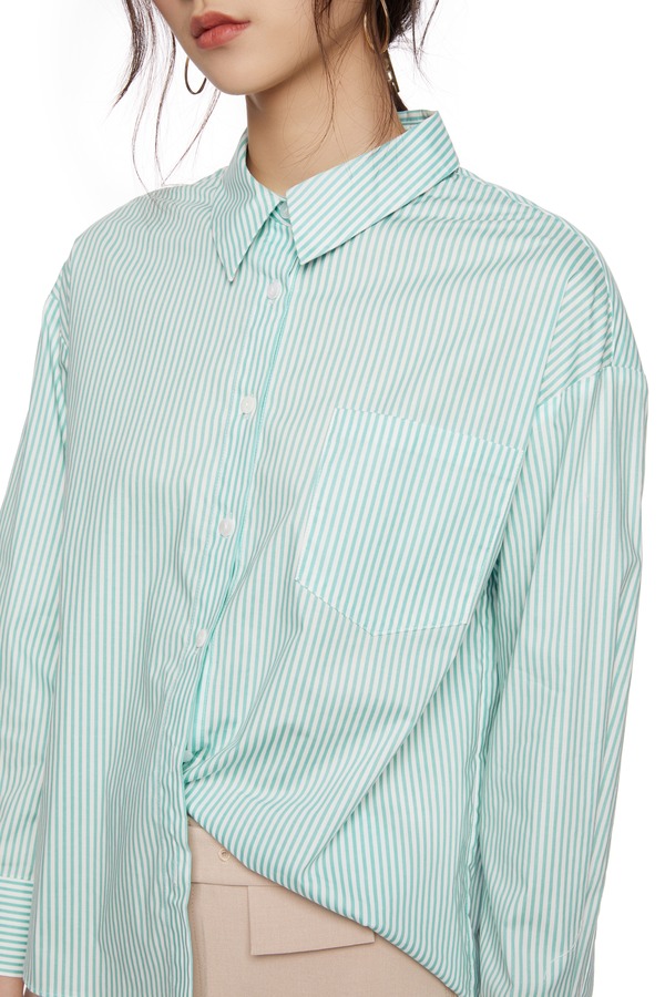 OCTAVIA 绿色不规则条纹衬衣 7067