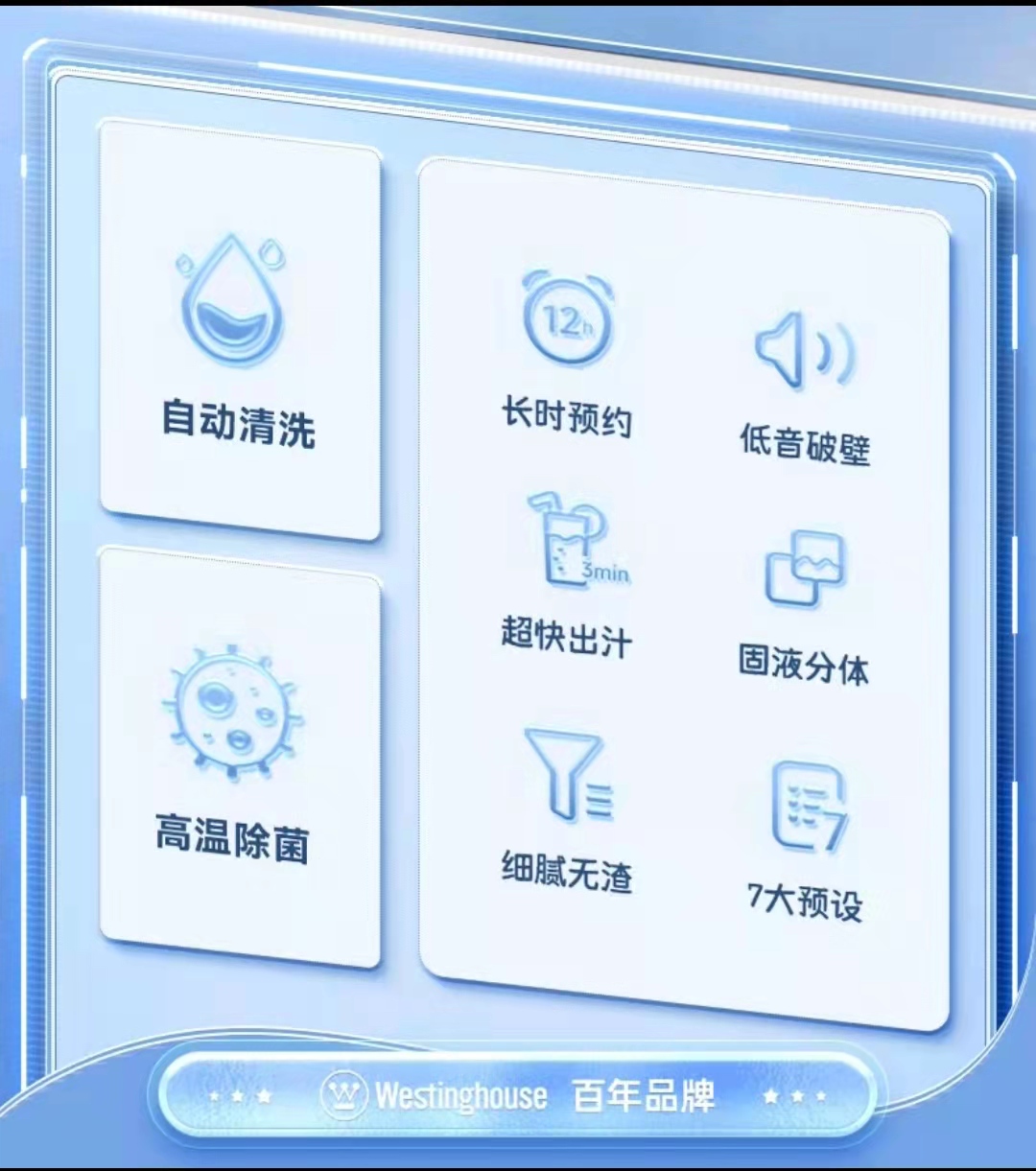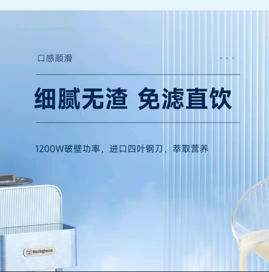 【全自动免手洗 高温除菌清洗】西屋(Westinghouse)免手洗破壁机家用豆浆机全自动不用手洗多功能料理机热烘除菌高端破壁机WFB-A272