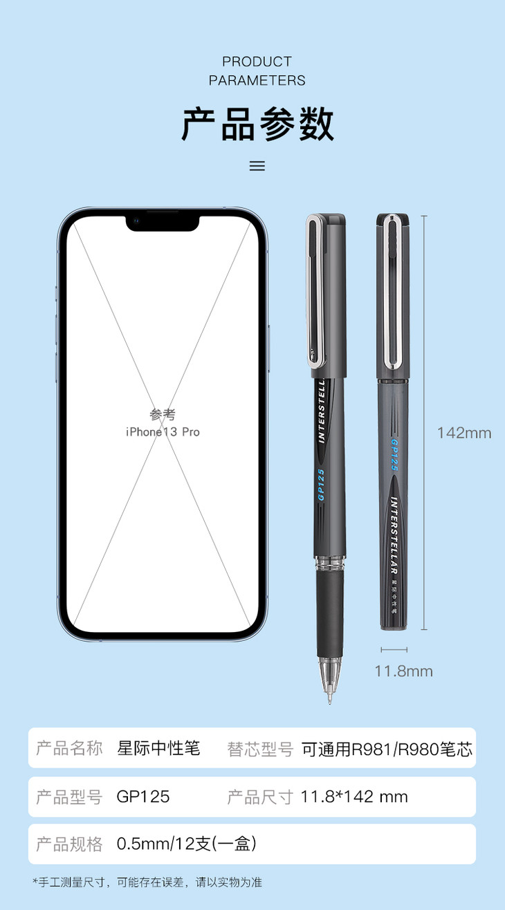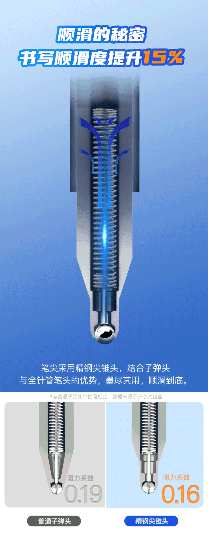 齐心中性笔GP125 ST精钢尖锥头0.5mm