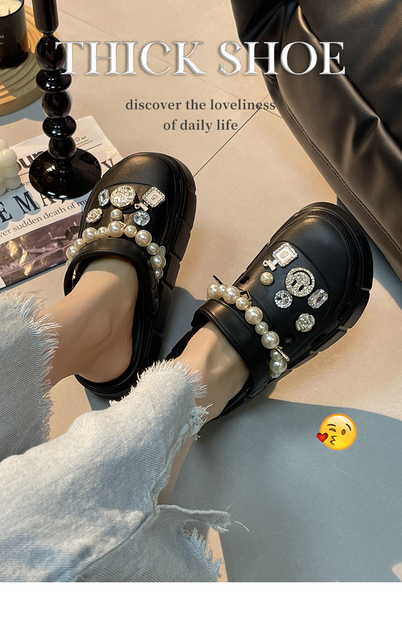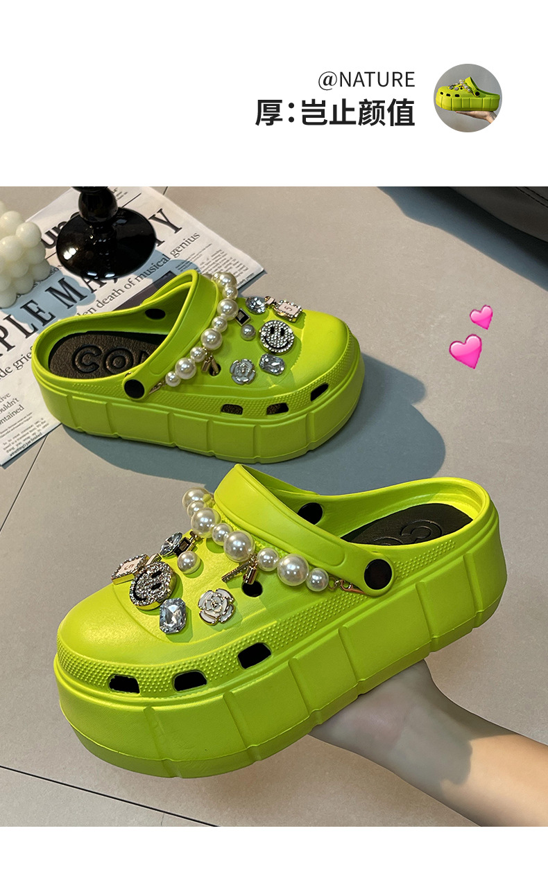 【服装鞋包】夏季踩屎感外穿增高厚底diy卡通两穿凉拖鞋洞洞鞋