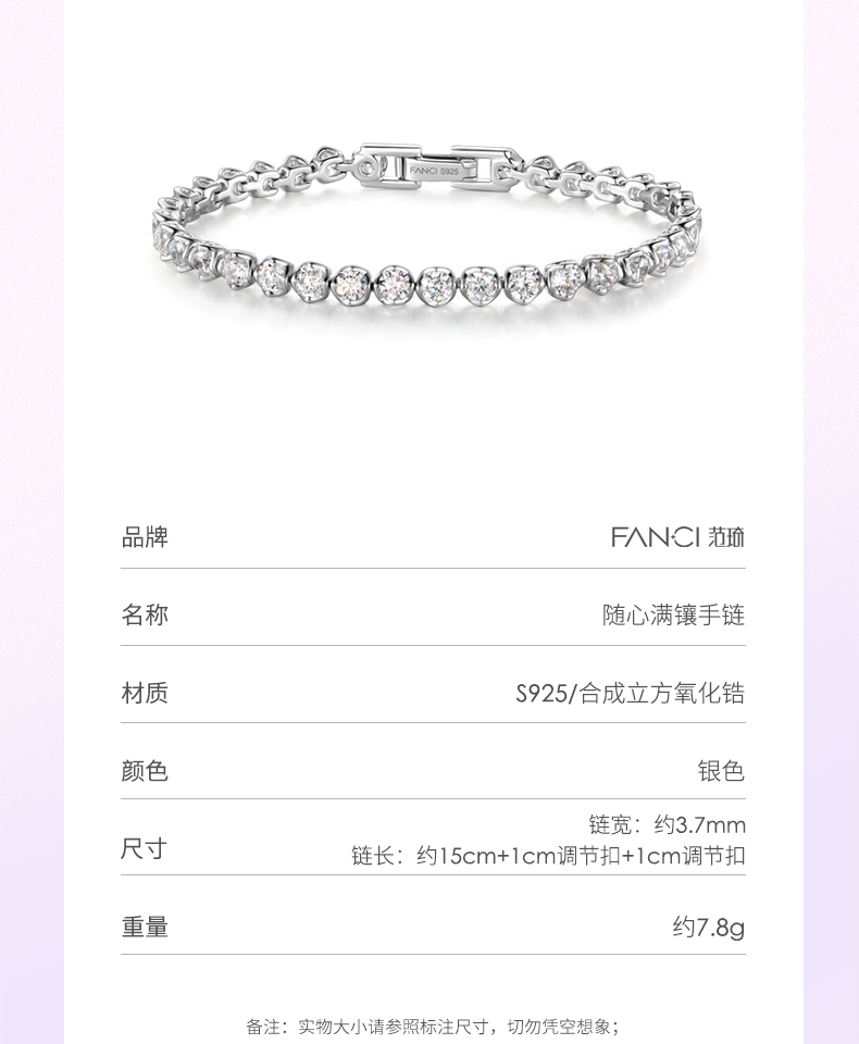 【明星同款】【随心满镶手链】Fanci范琦银饰女Tennis轻奢小众设计高级感2024新款 下单赠精美礼盒+顺丰速运+运费险