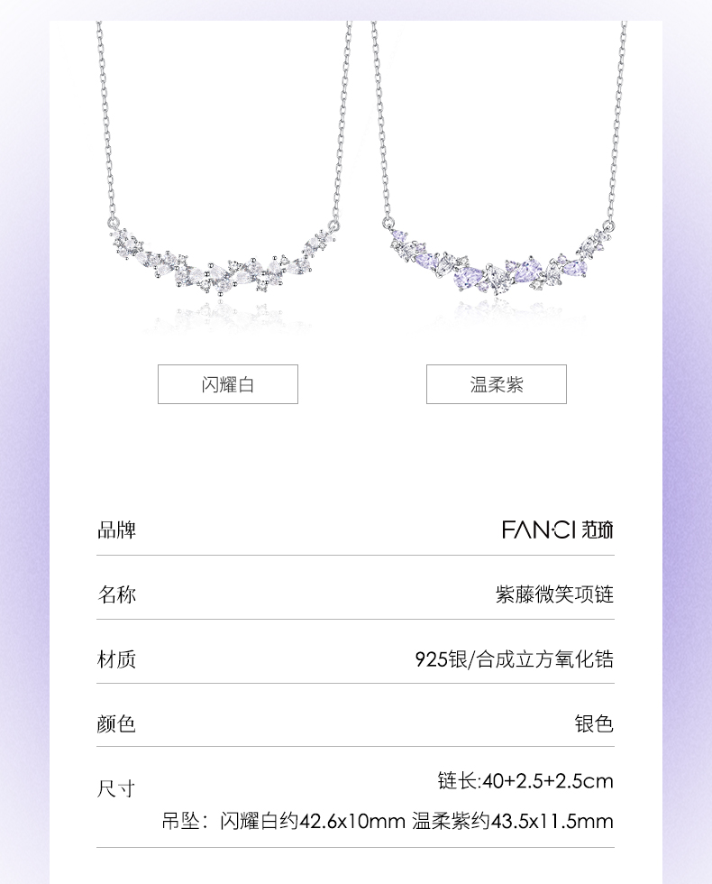 【明星同款】FANCI范琦紫藤微笑项链温柔紫女小众轻奢高级感锁骨链