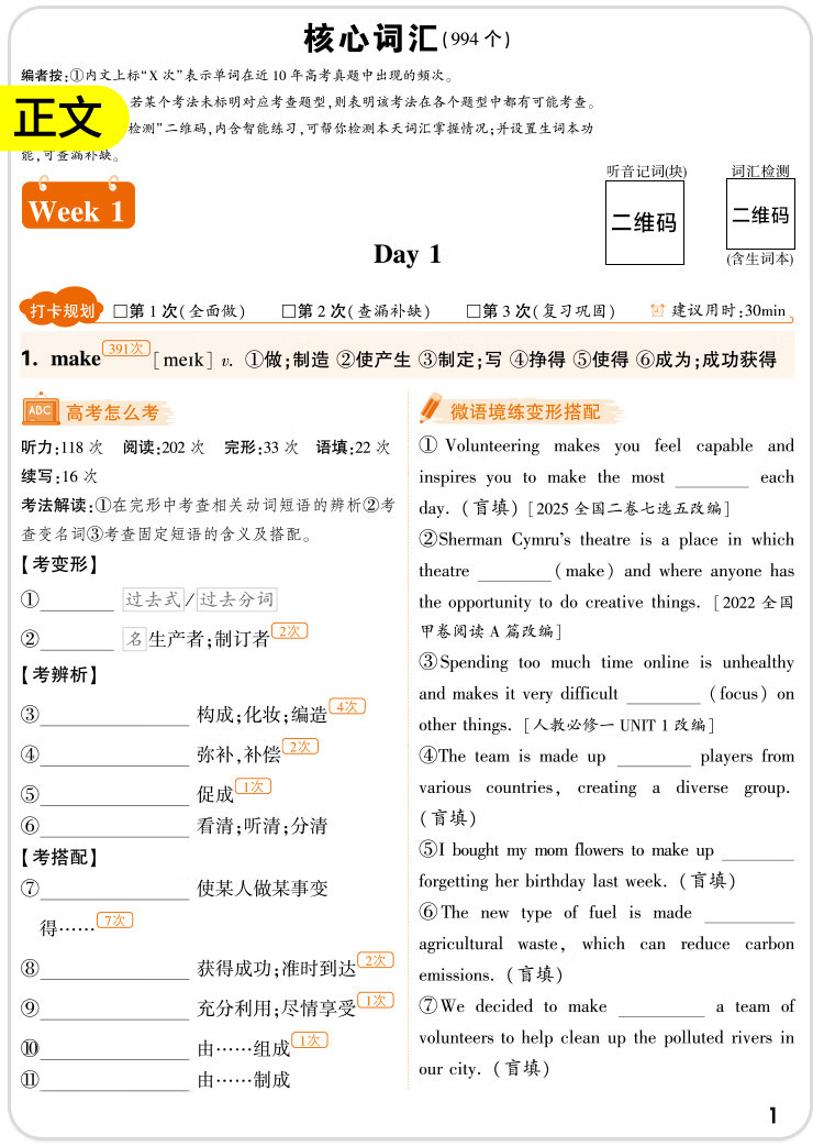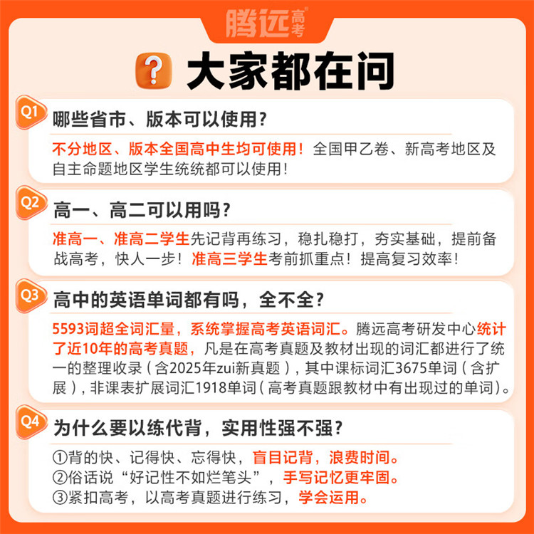 腾远高考2026高中英语词汇与高考考法 积累高考单词本正序版高频词汇书高三高考英语词典