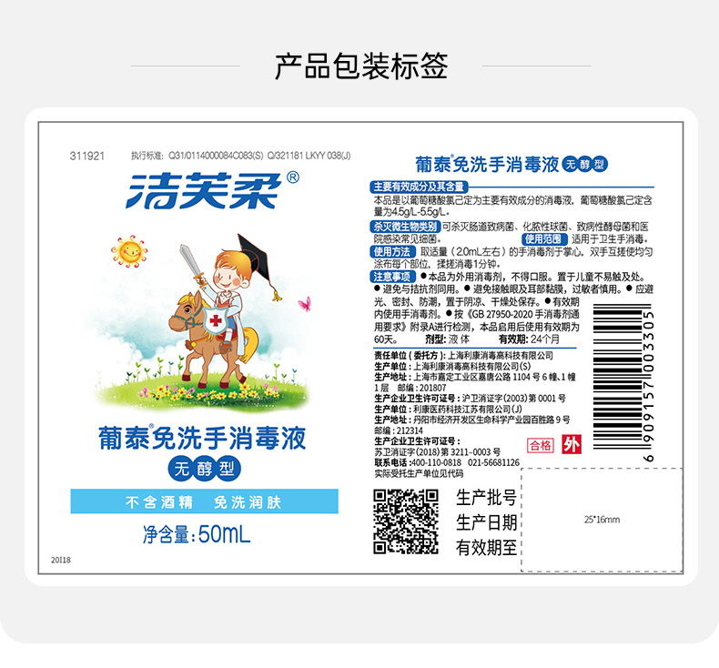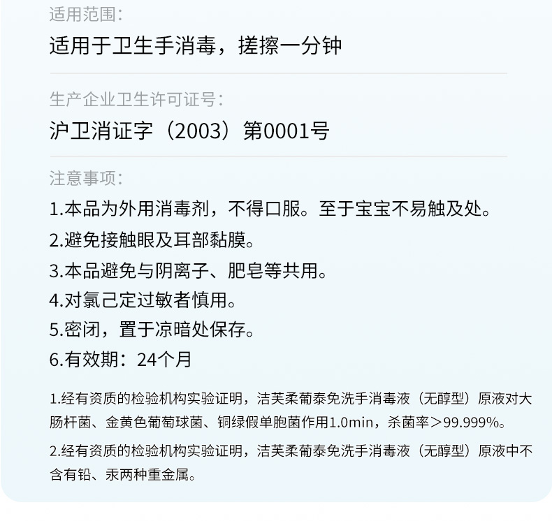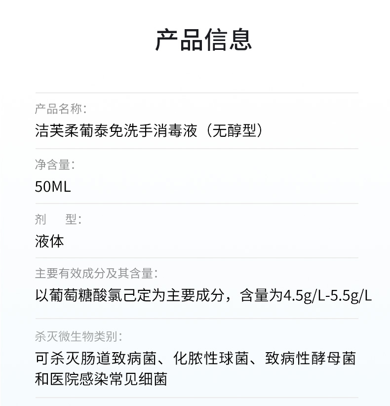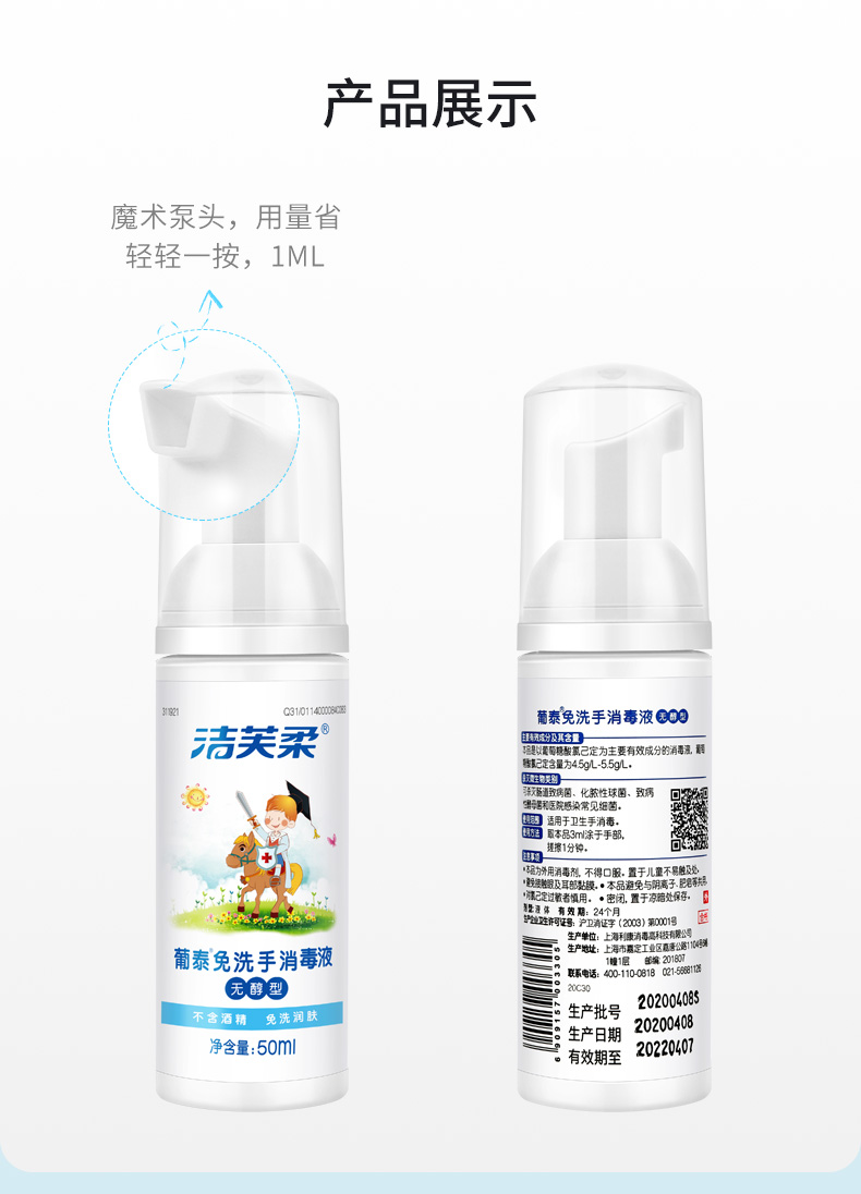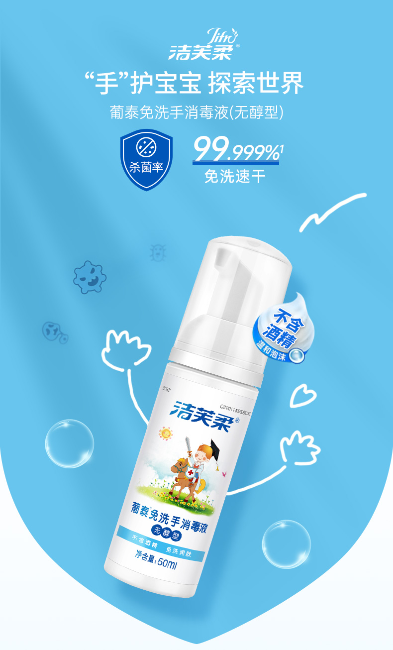 洁芙柔葡泰无醇儿童免洗洗手液50ml