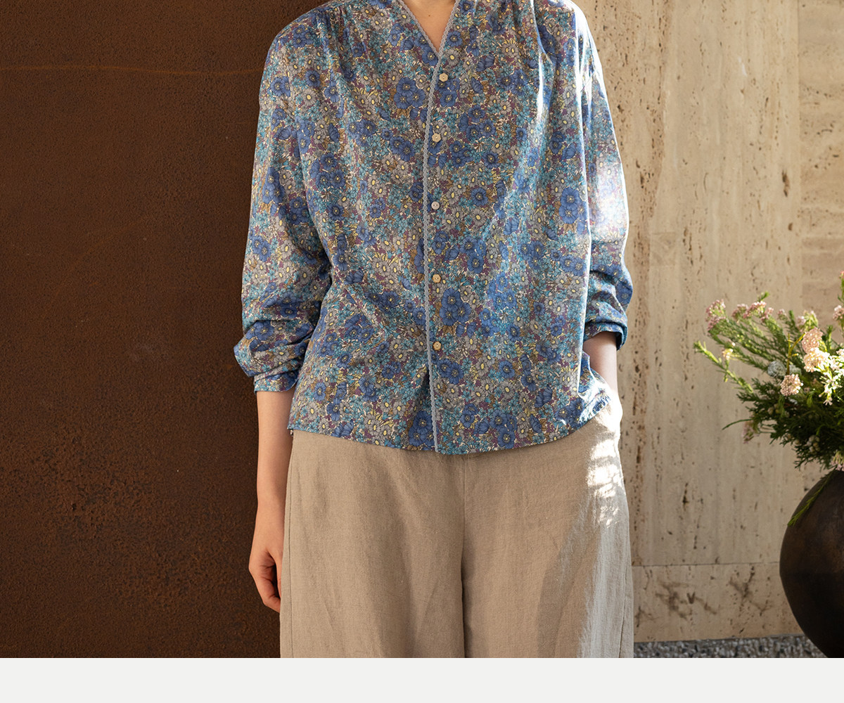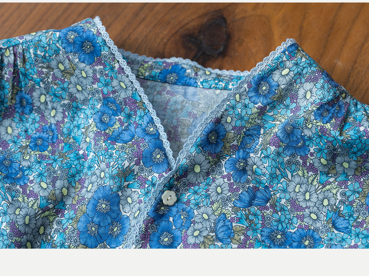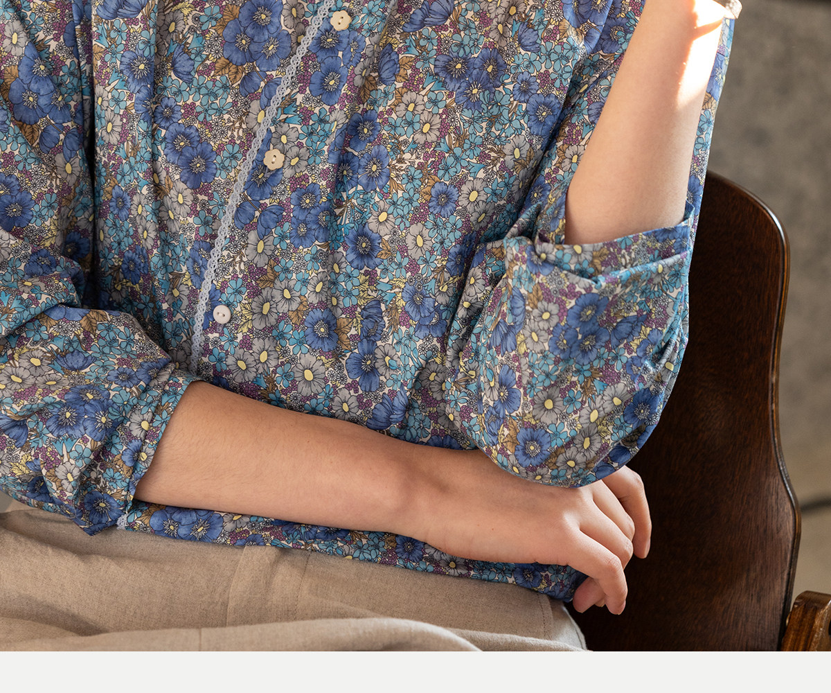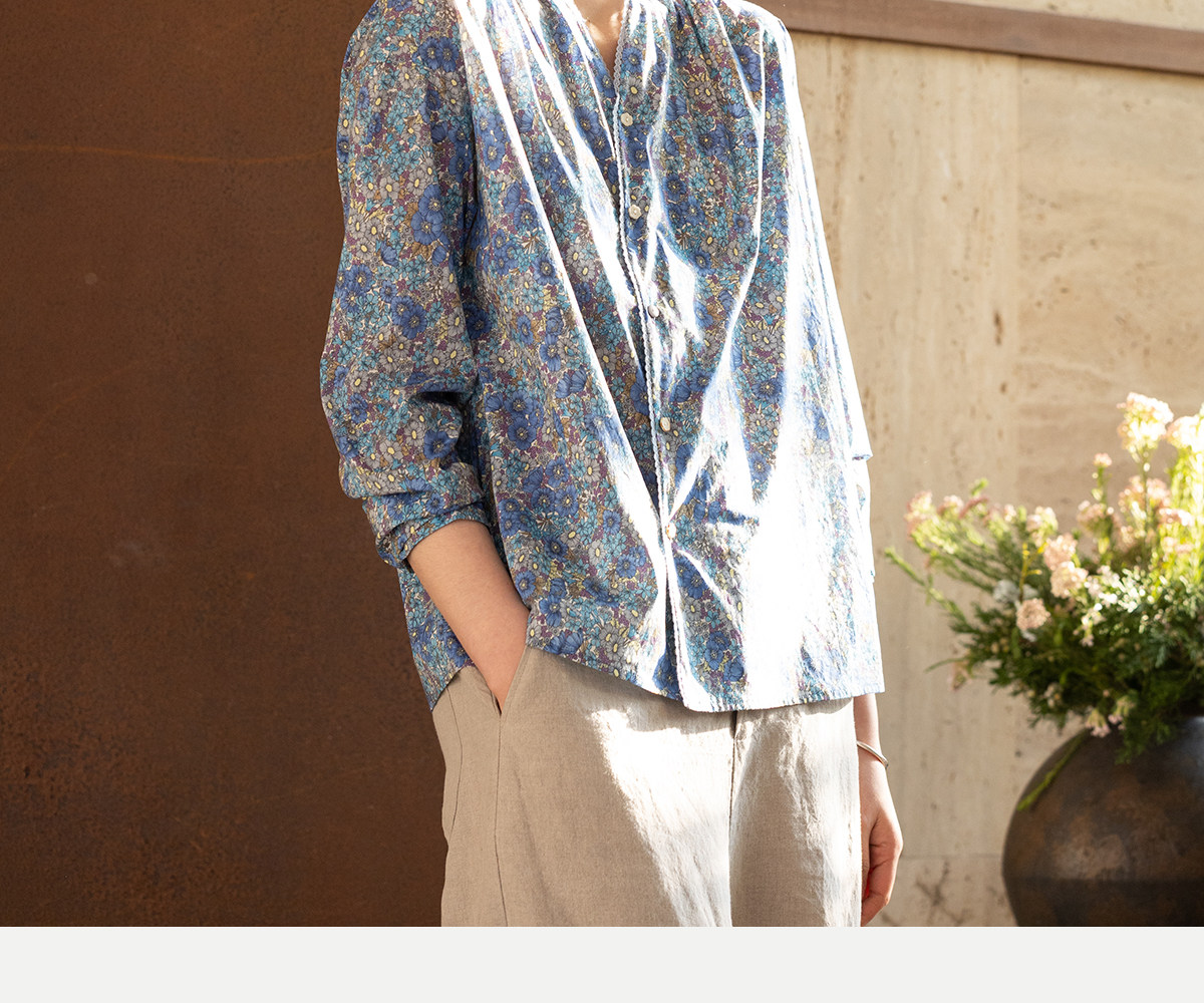牧衣游原创 80支新疆长绒棉印花衬衫蓝色文艺减龄百搭开衫 梧桐