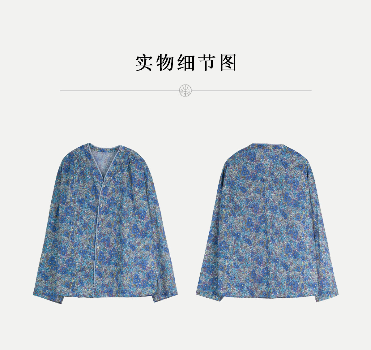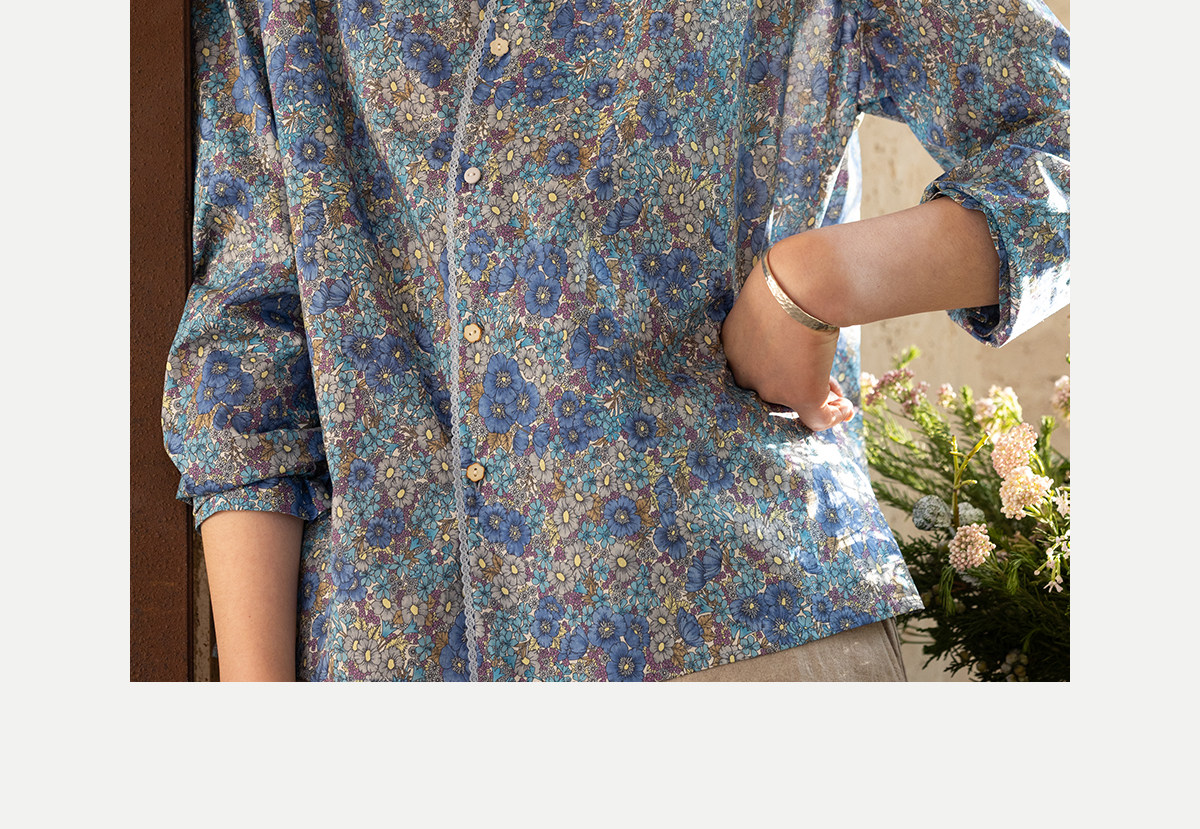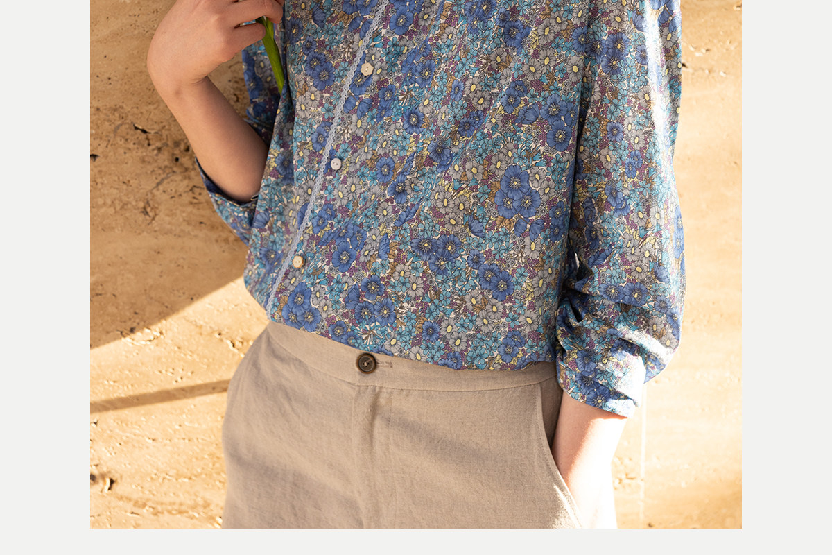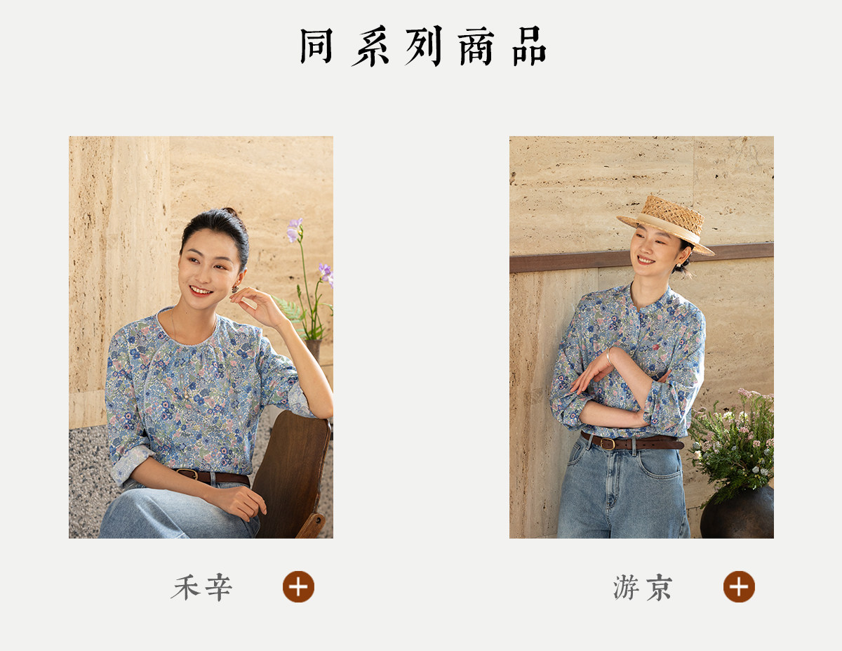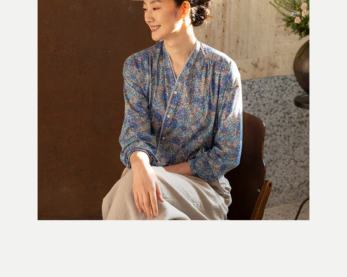 牧衣游原创 80支新疆长绒棉印花衬衫蓝色文艺减龄百搭开衫 梧桐