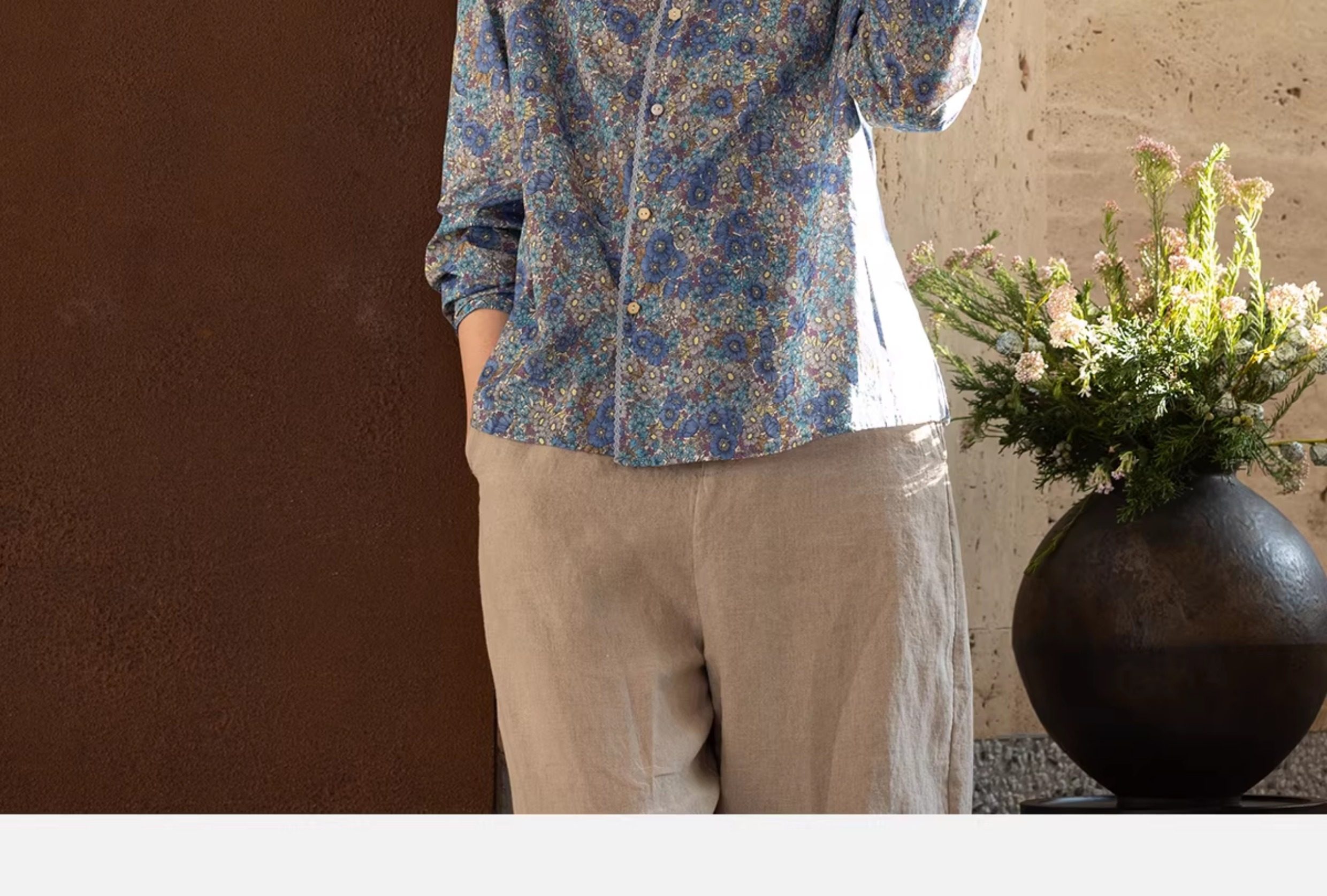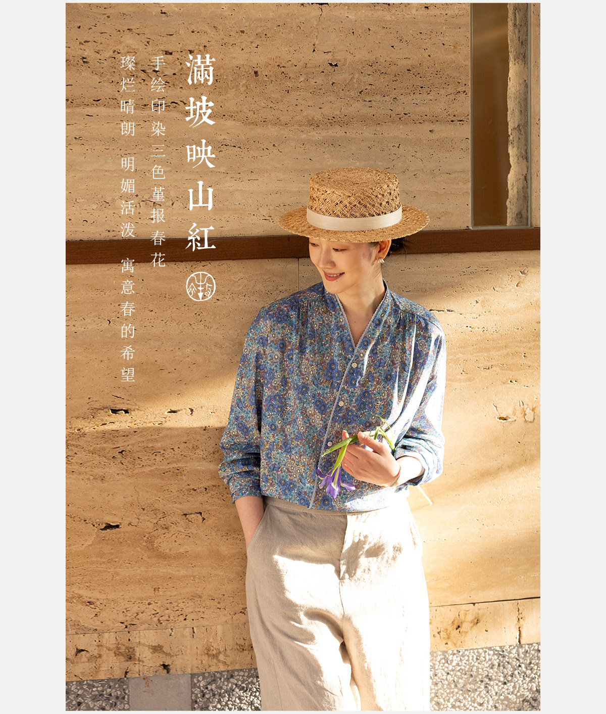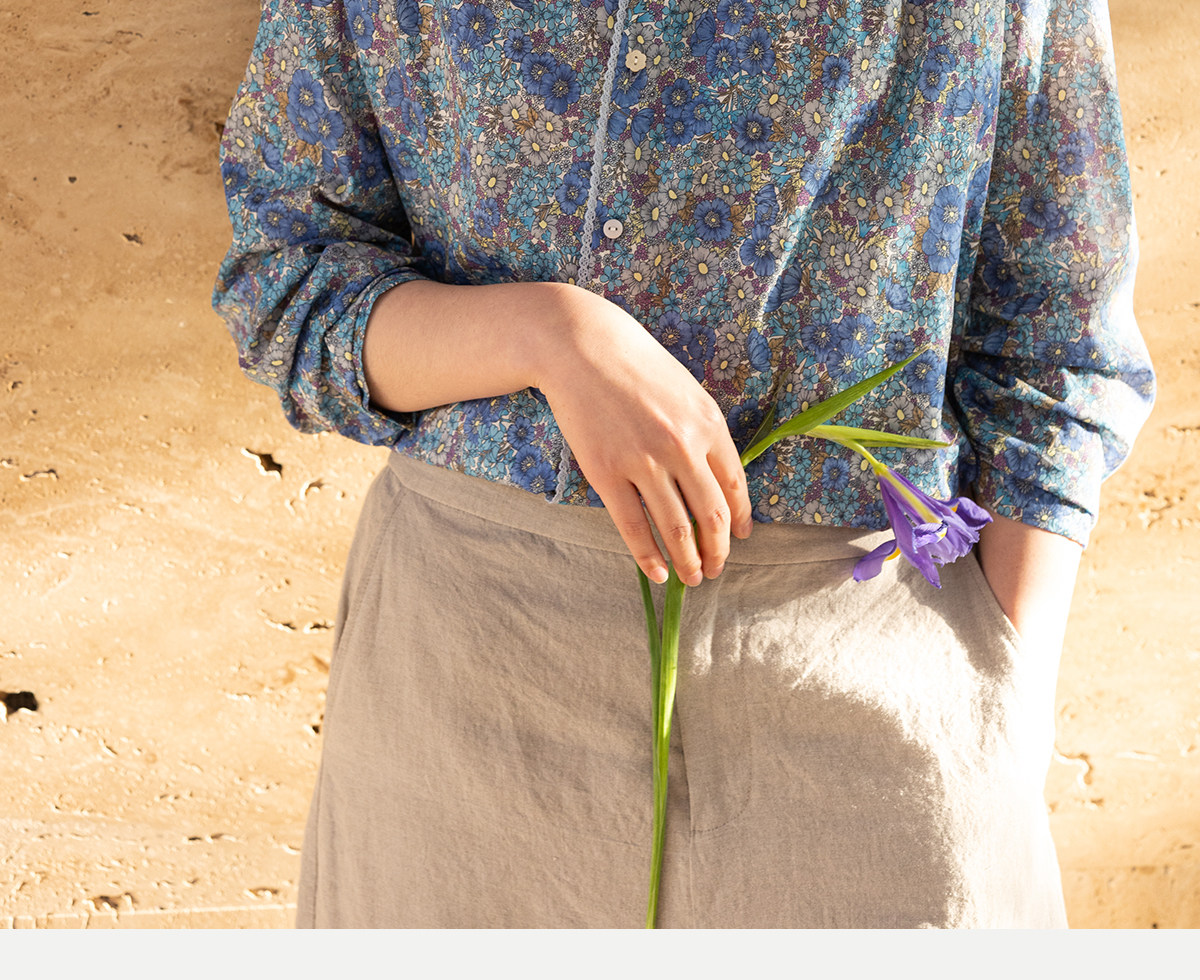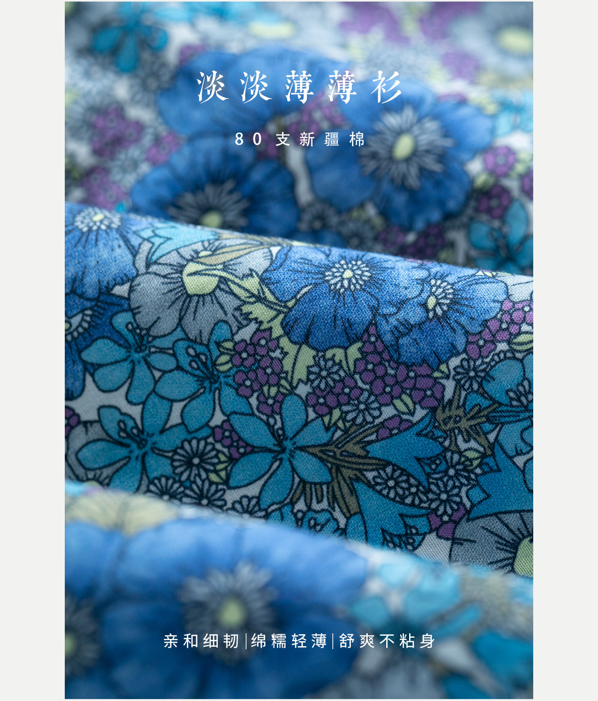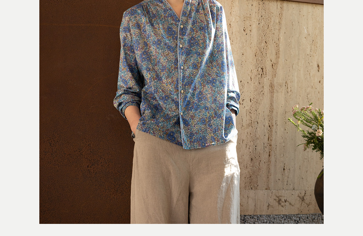 牧衣游原创 80支新疆长绒棉印花衬衫蓝色文艺减龄百搭开衫 梧桐