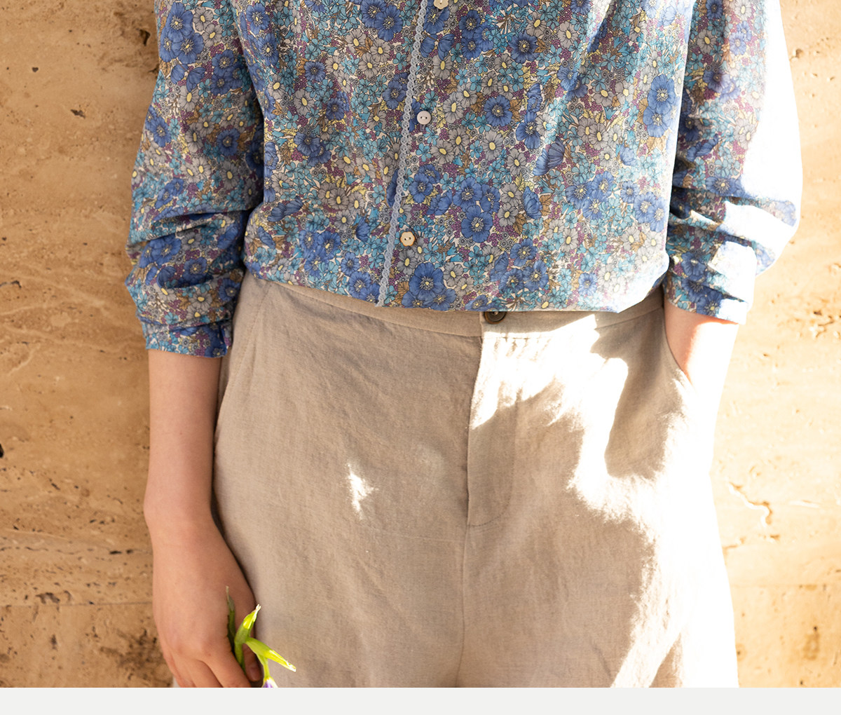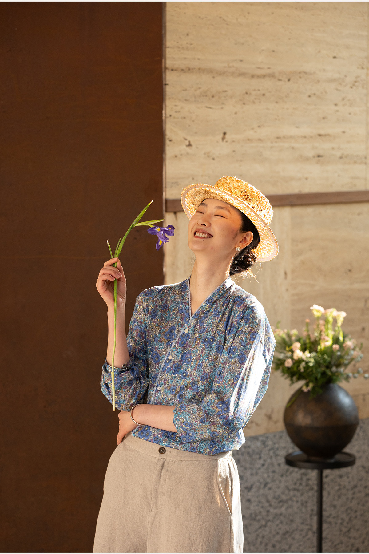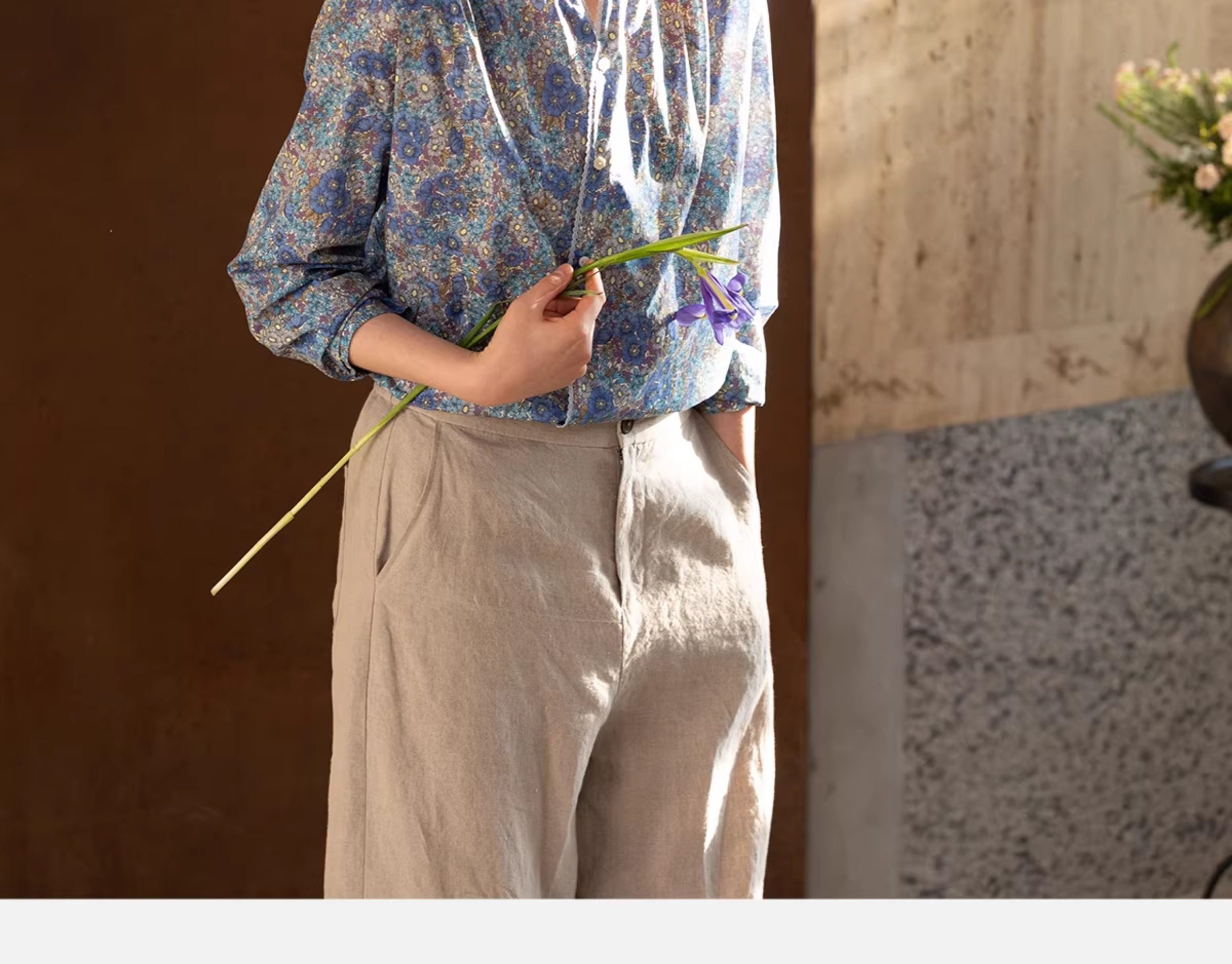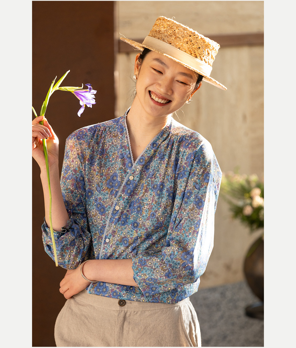 牧衣游原创 80支新疆长绒棉印花衬衫蓝色文艺减龄百搭开衫 梧桐
