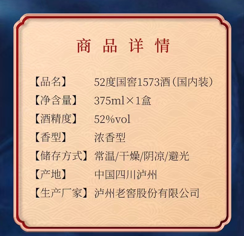 【8月积分商城】52度 国窖1573 375ml 泸州老窖官方旗舰店
