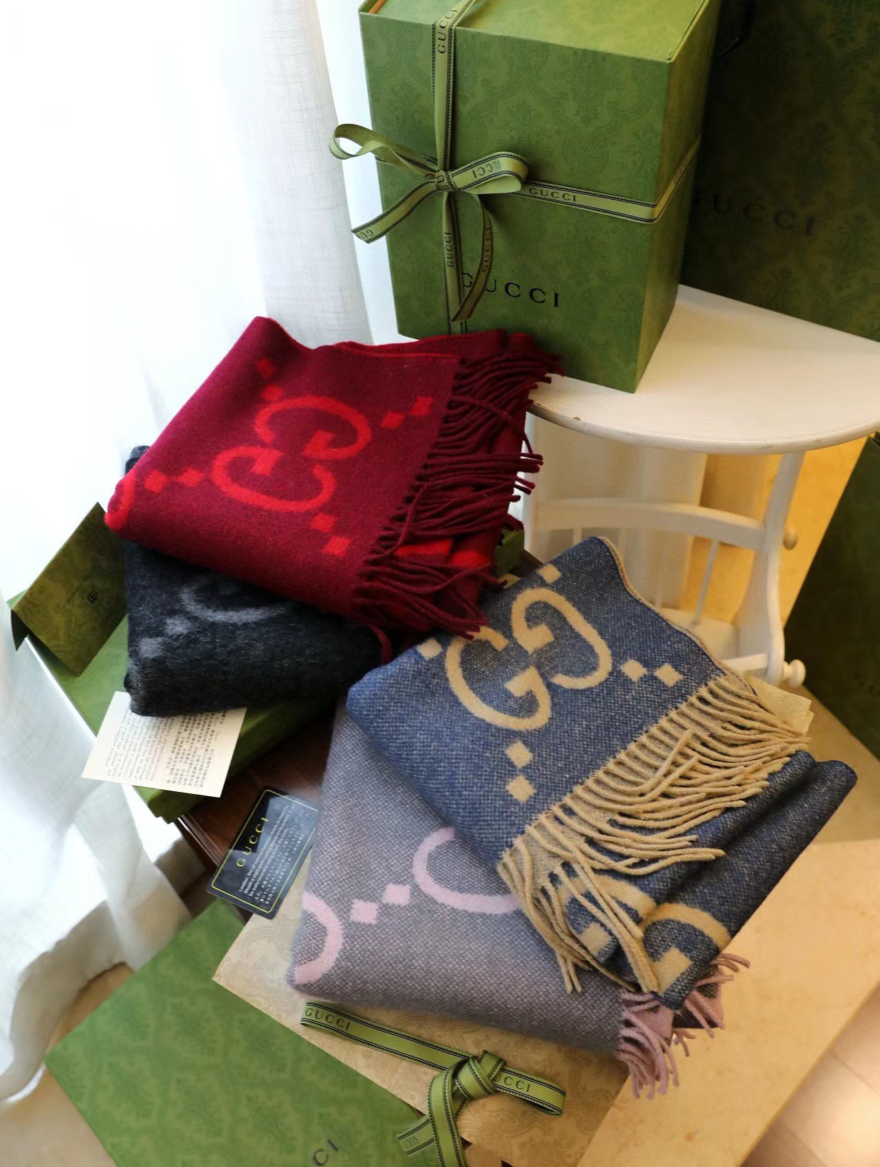 含全套礼盒包邮【▪️重磅💣真香必入款!!Gucci重磅纯羊绒新款围巾】专柜最最新款,专柜售价7200的好货!就是喜欢Gucci这种调调!长在很多人喜欢这种时髦感的审美上!!这东西100%真心是跟着专柜一起的好东西!! 一模一样的品相!!!