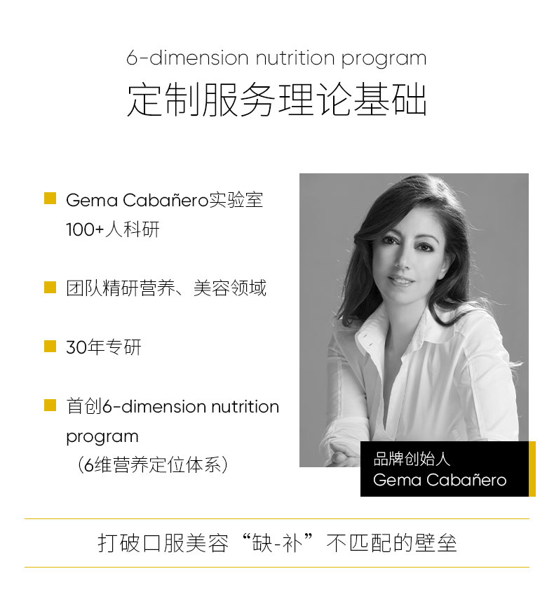180 the concept由西班牙抗衰老和营养分析专家Gema Cabahero于2010年在西班牙创建品牌专注于美容配方保健。是西班牙各界社会名流时尚达人首选口服抗衰品 被誉为西班牙最佳美容食品