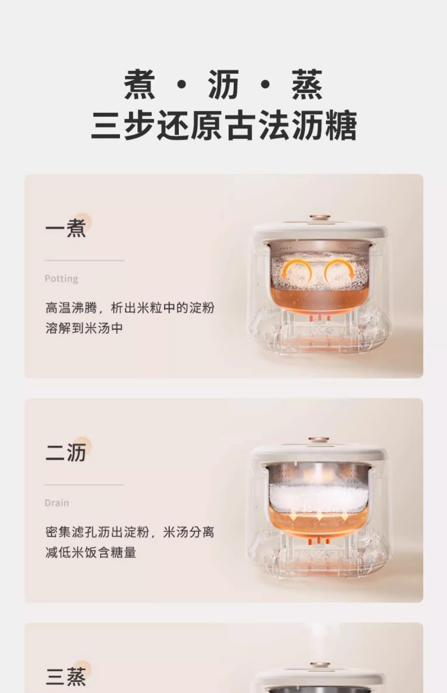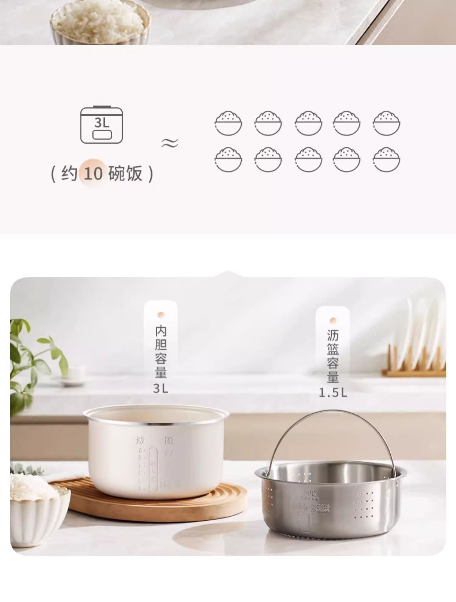 摩动低糖电饭煲米汤分离智能家用多功能3升L沥米饭沥糖蒸饭煮饭锅
