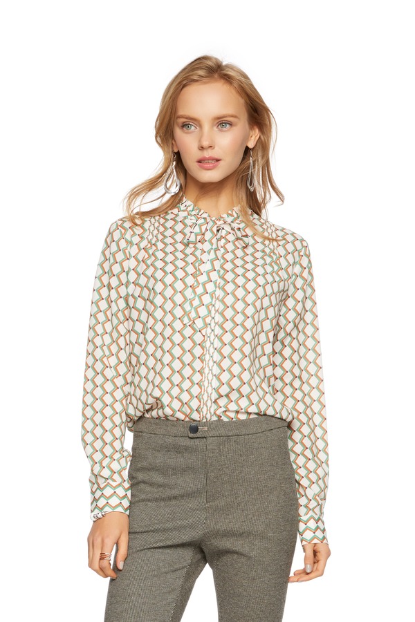 SUMMER & SAGE 拼色锯齿纹系带衬衣 5599