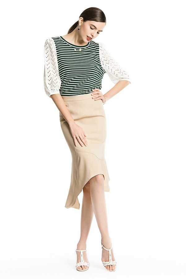 EMC亿美丞 卡其色不对称鱼尾裙 1684