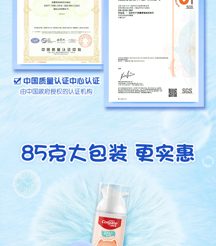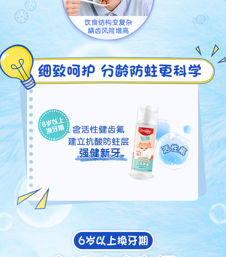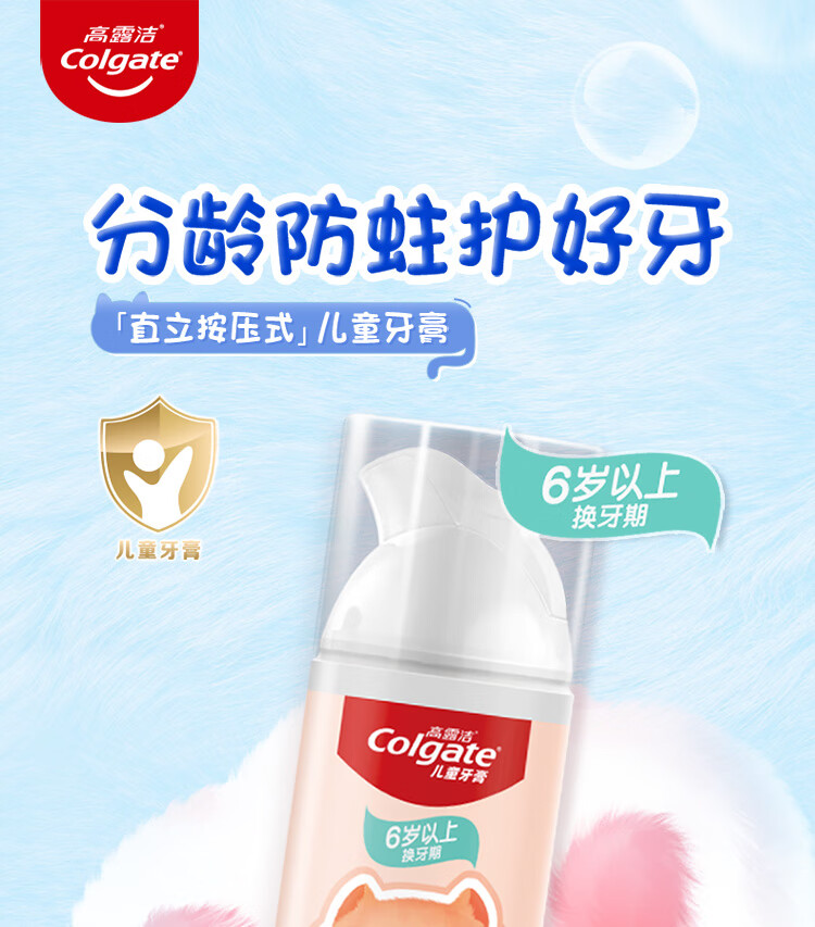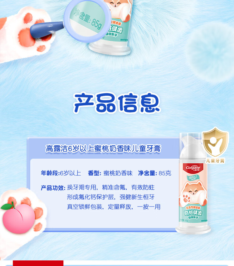 高露洁防蛀健齿牙膏蜜桃奶香味 -6岁以上(直立按压式)85g