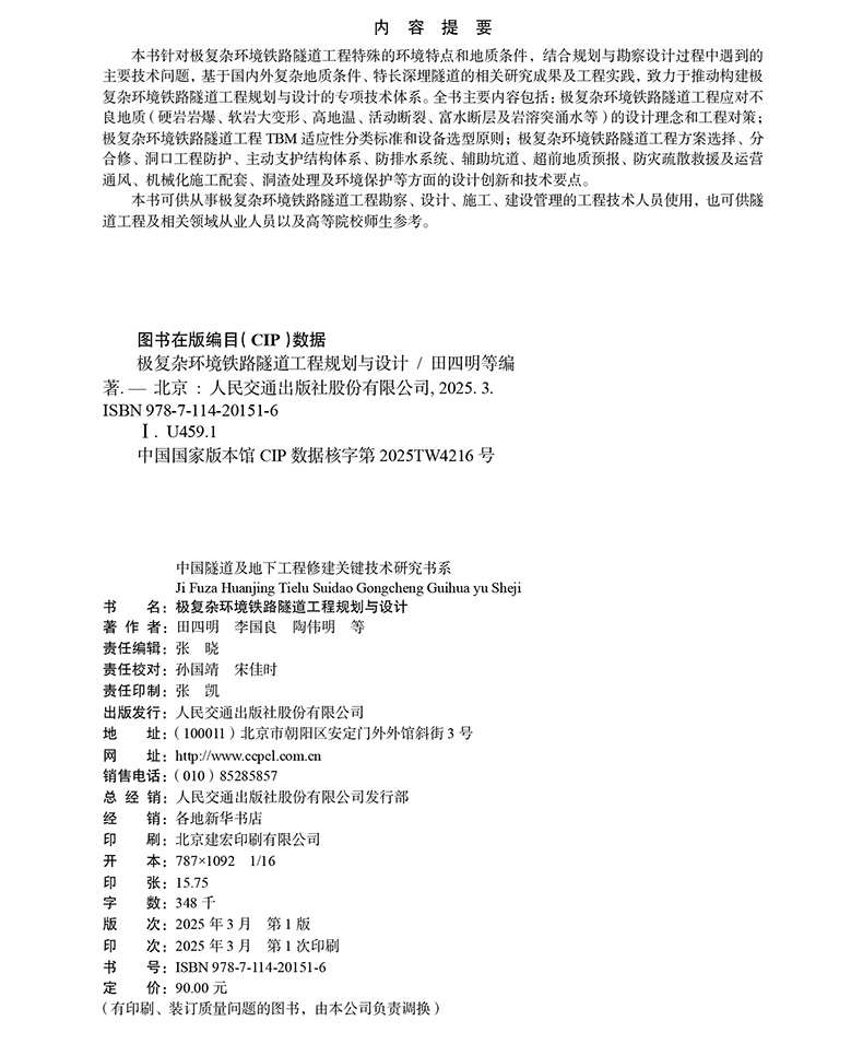 书名:极复杂环境铁路隧道工程规划与设计