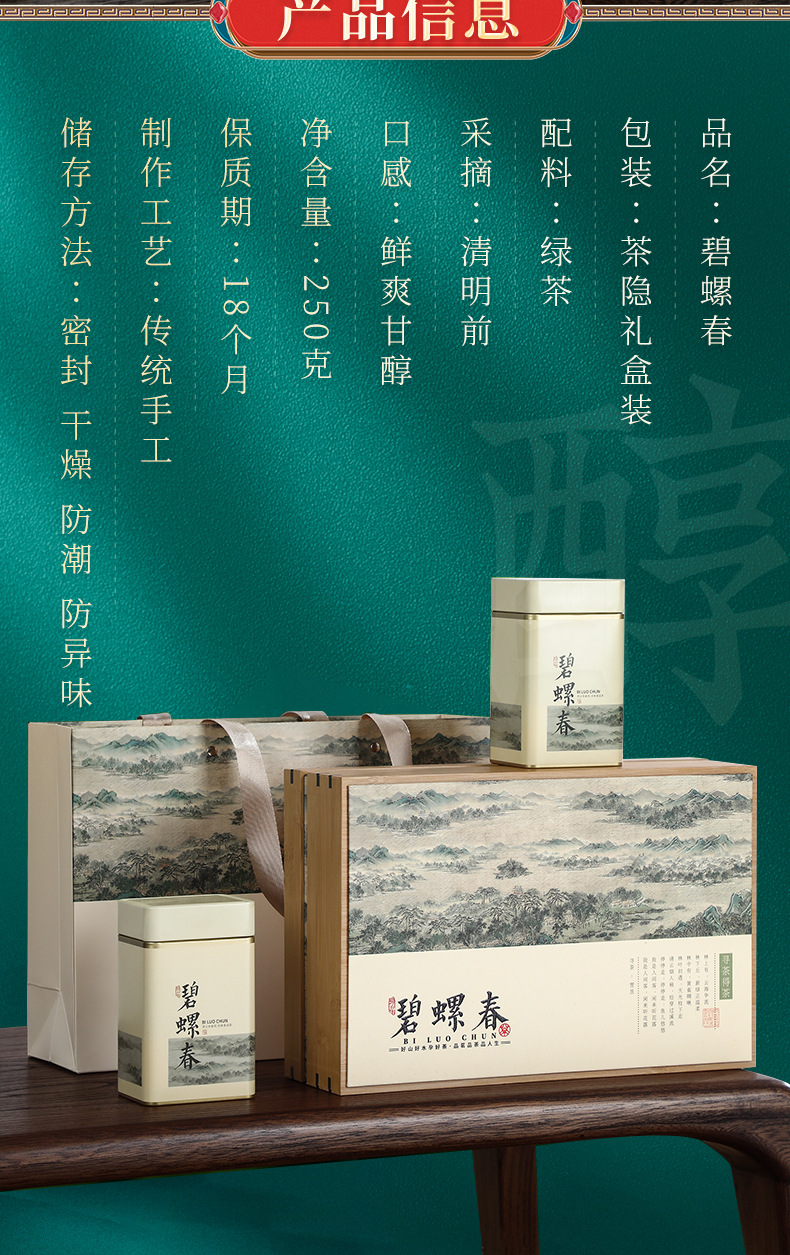 【绿茶碧螺春250g】特级茶叶礼盒装 茶叶绿茶半斤装茶叶自己喝 送长辈朋友 父亲节