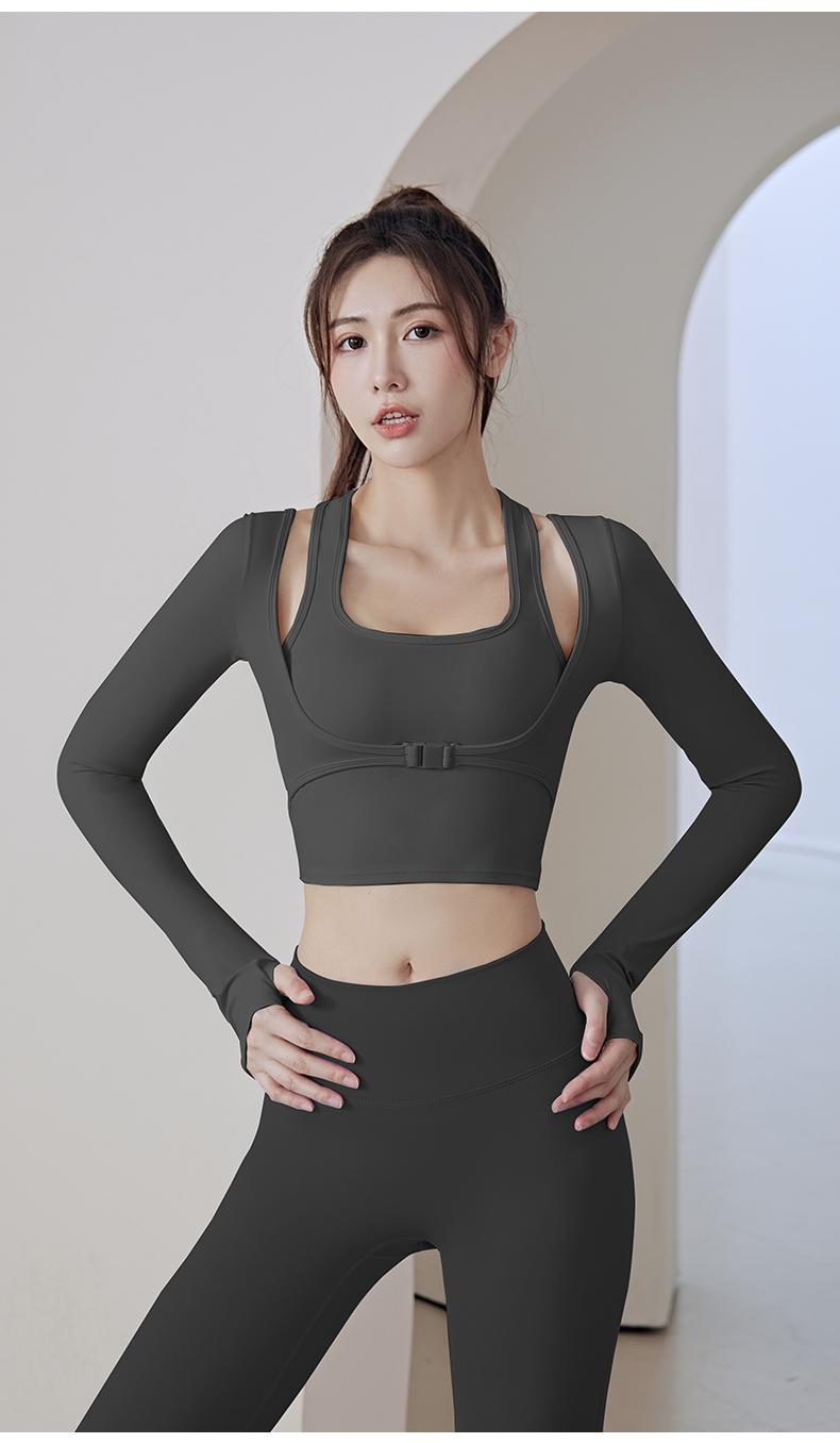 lulu同款|新款时尚显瘦瑜伽服两件套 带胸垫专业速干运动健身服秋冬新款跑步套装