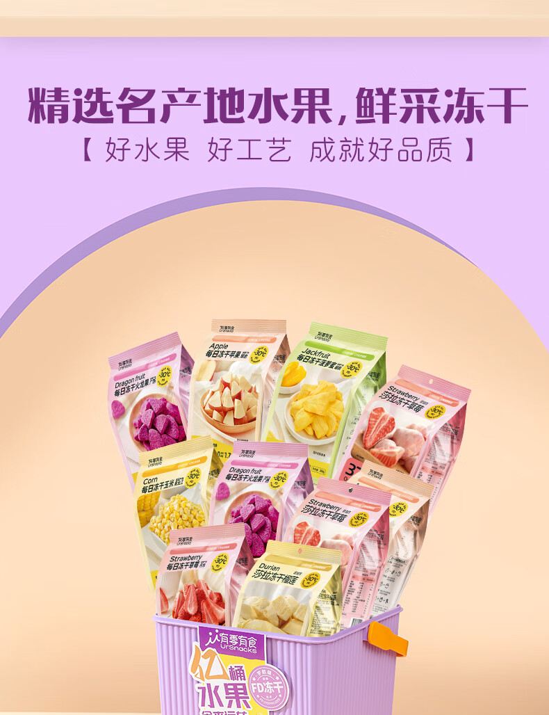 有零有食(YOULINGYOUSHI)冻干水果242g健康零食草莓火龙果菠萝蜜苹果大礼包