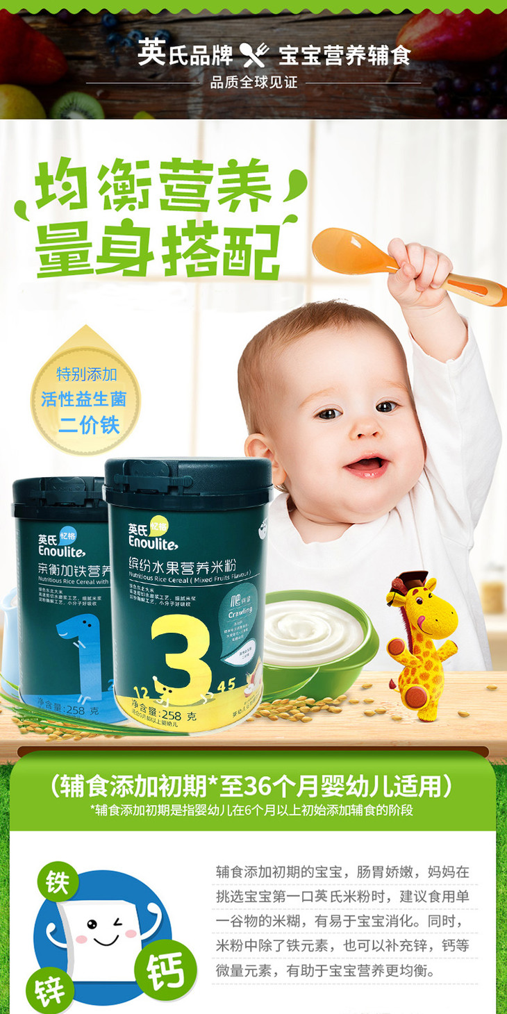 英氏婴儿辅食营养米粉258克(多味道可选)