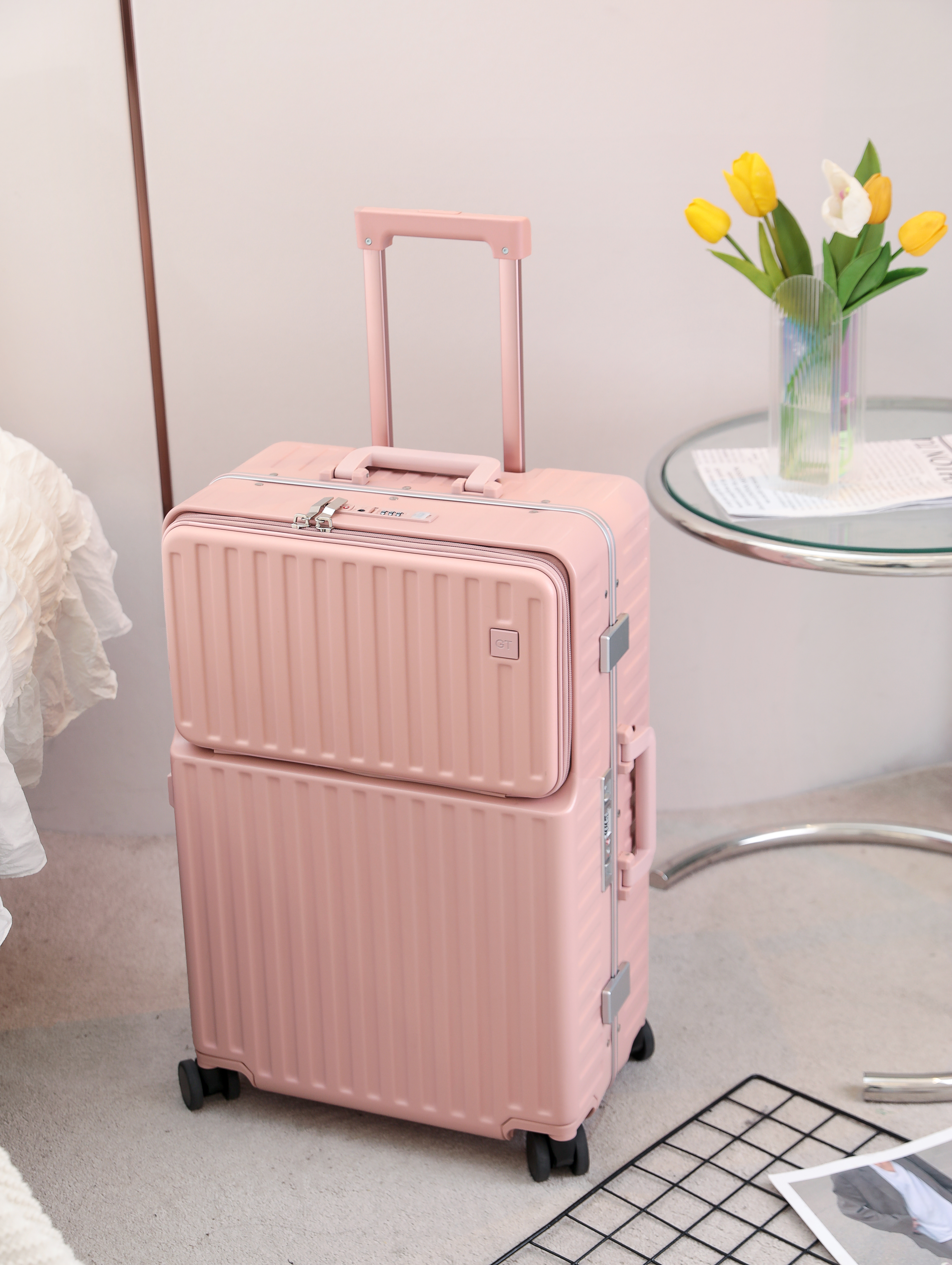 自然醒B001多功能行李箱新款铝框拉杆箱万向轮20寸登机旅行箱24耐用结实男女ZT