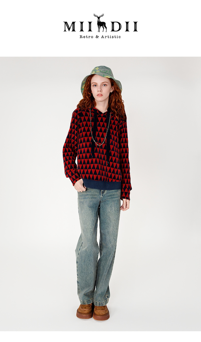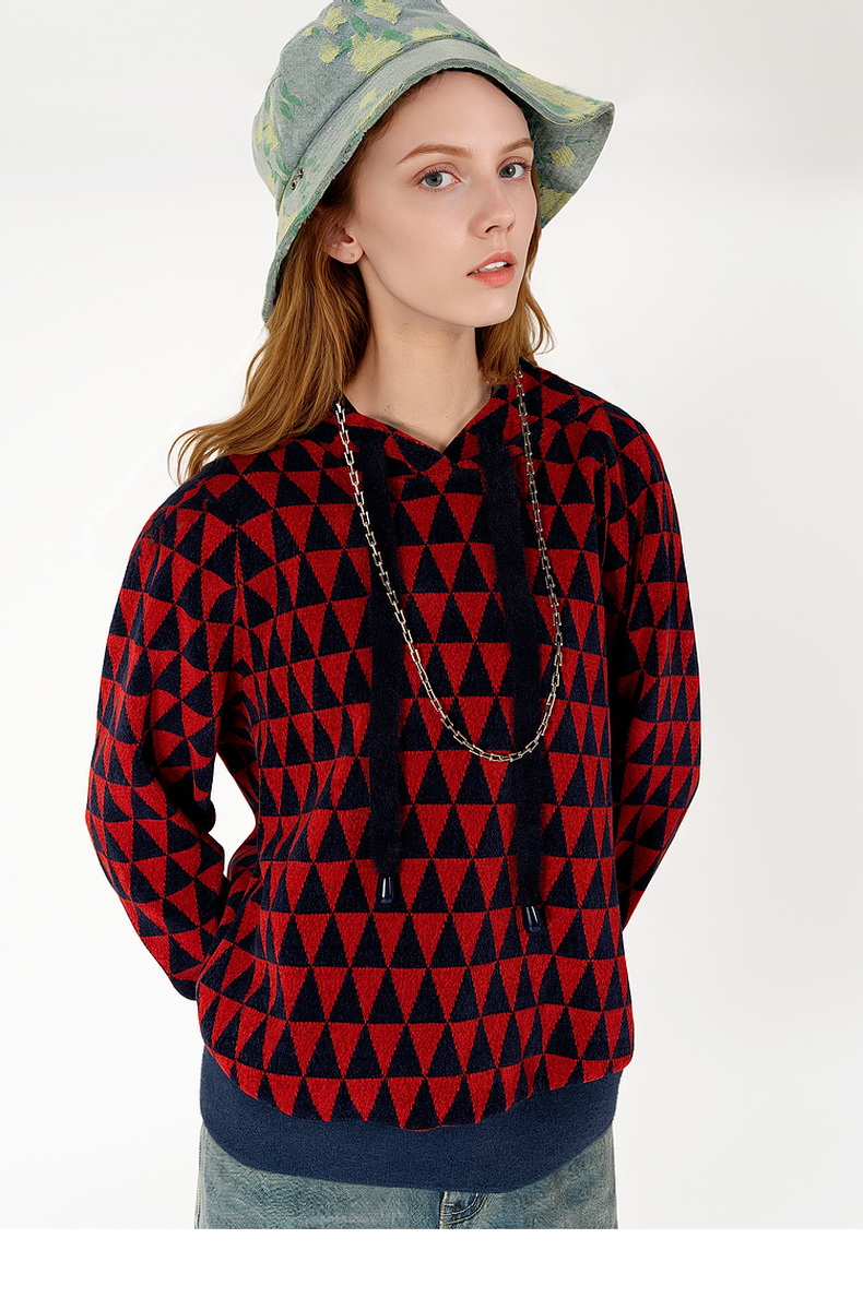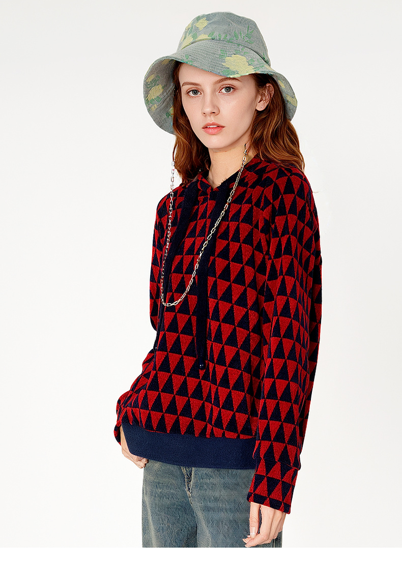 谜底格纹卫衣长袖女2025春季新款百搭休闲连帽短款上衣258MV5502