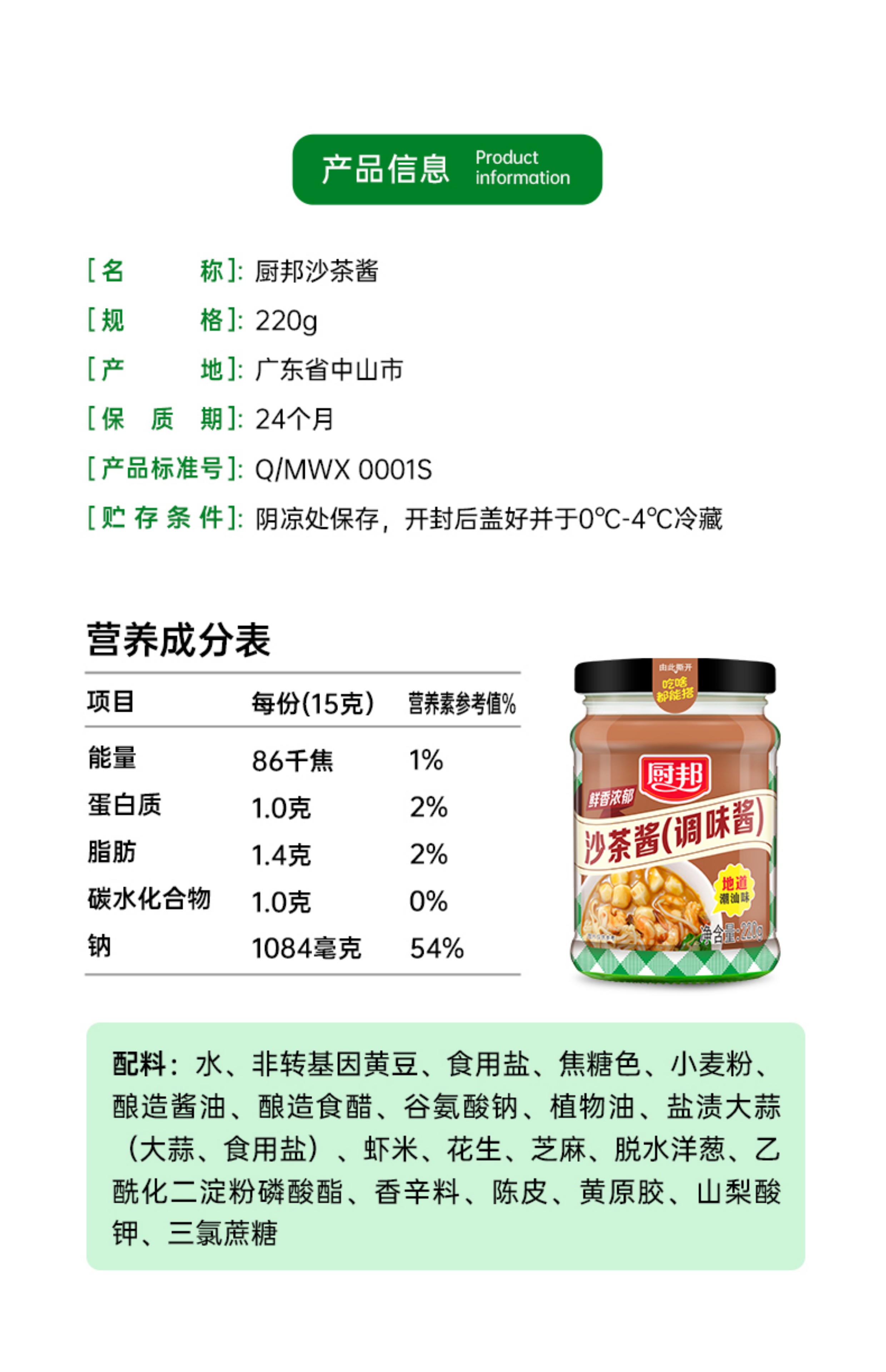 厨邦沙茶酱220g 调味酱正宗沙爹酱家用牛肉火锅蘸酱潮汕风味商用LY