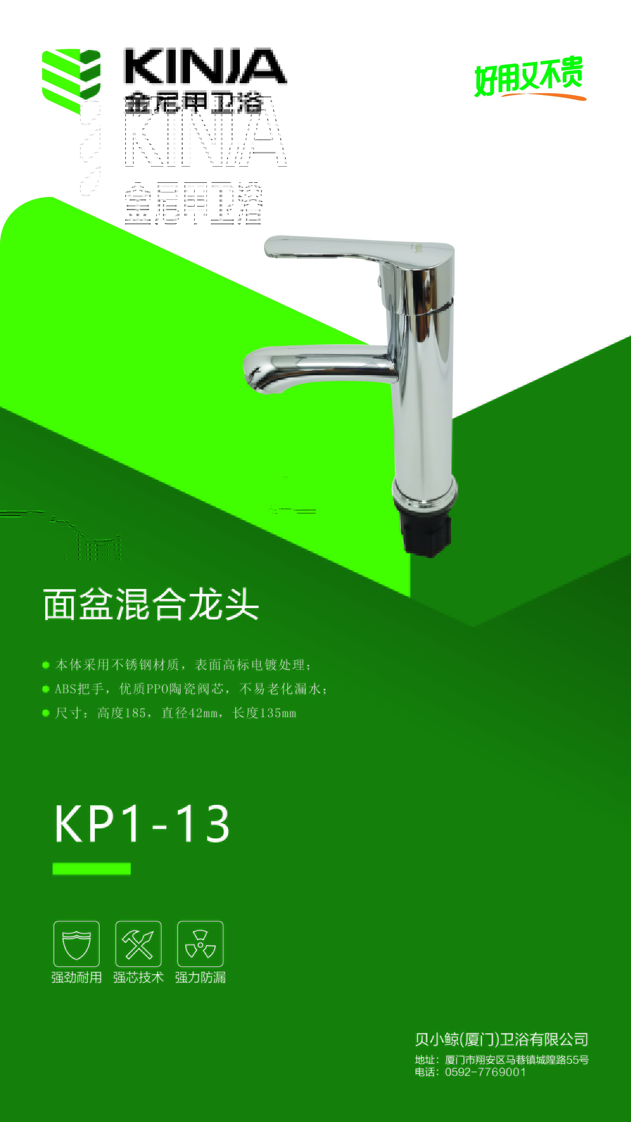 龙头/KP1-13/面盆混合/不锈钢电镀/不配尖头管