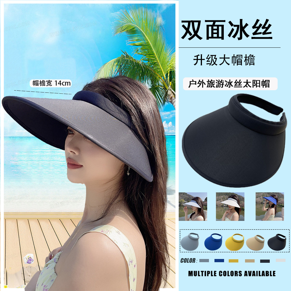 韩国新款大檐百搭防晒帽防紫外线uv空顶帽户外旅游日系冰丝太阳帽2025新款小红书爆款