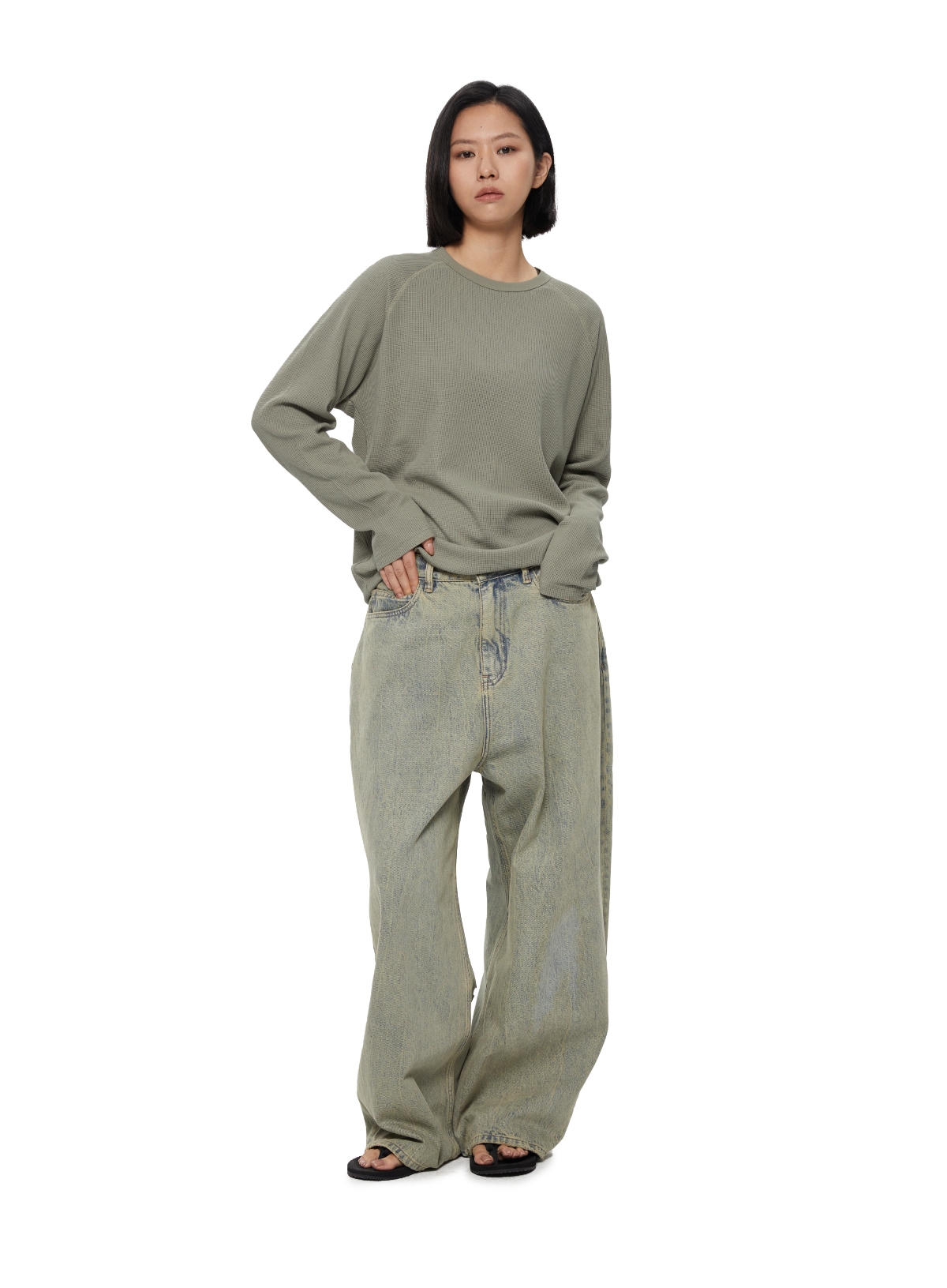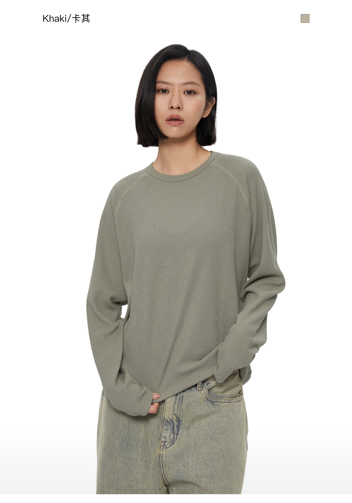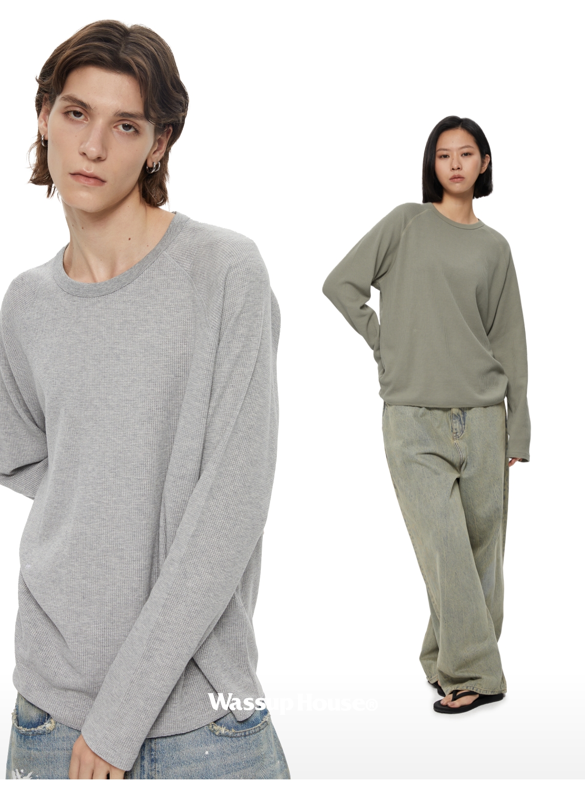WassupHouse 华夫格插肩长袖