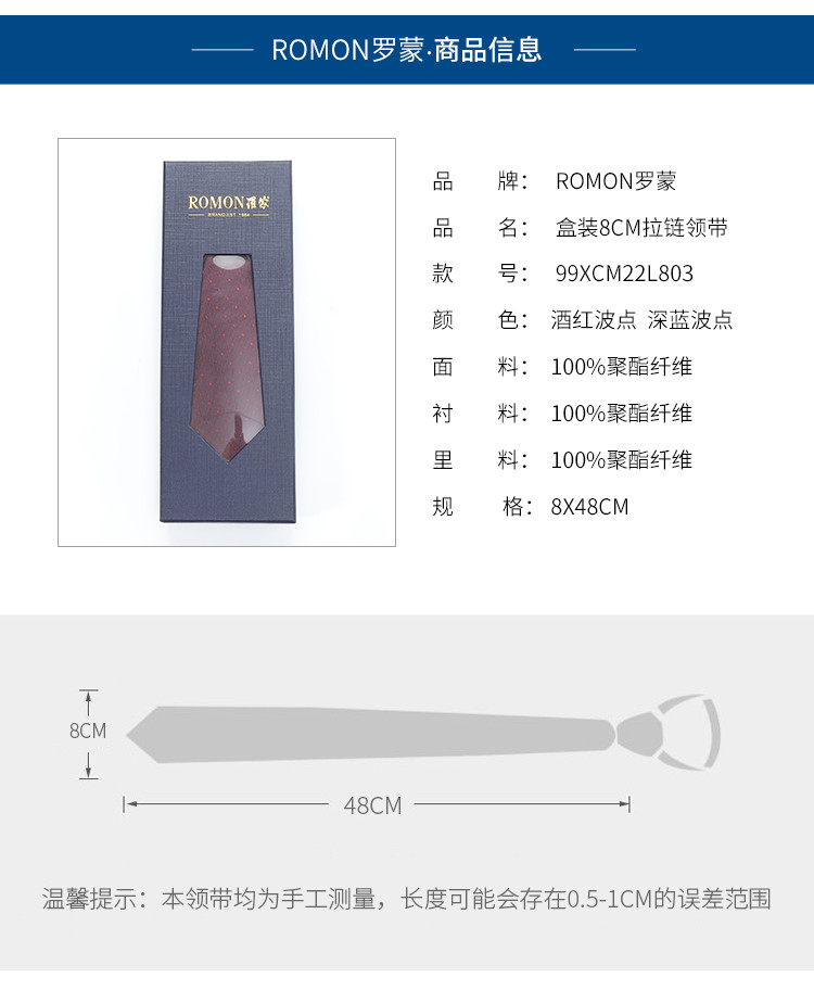 【礼盒款&简约波点】罗蒙8厘米拉链领带婚礼婚庆时尚通勤男士领带