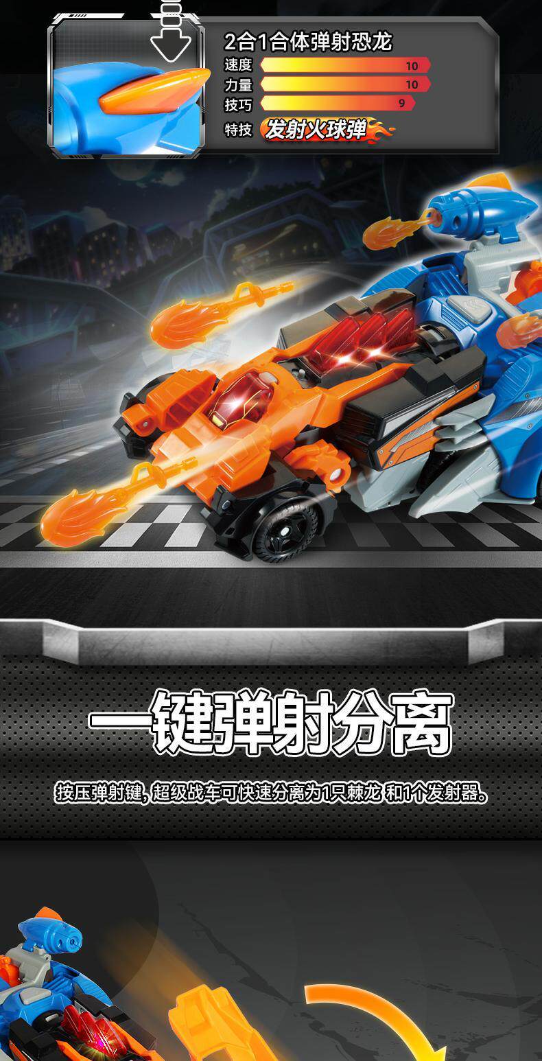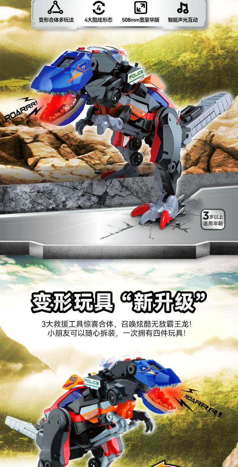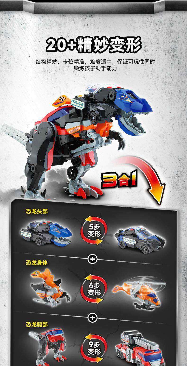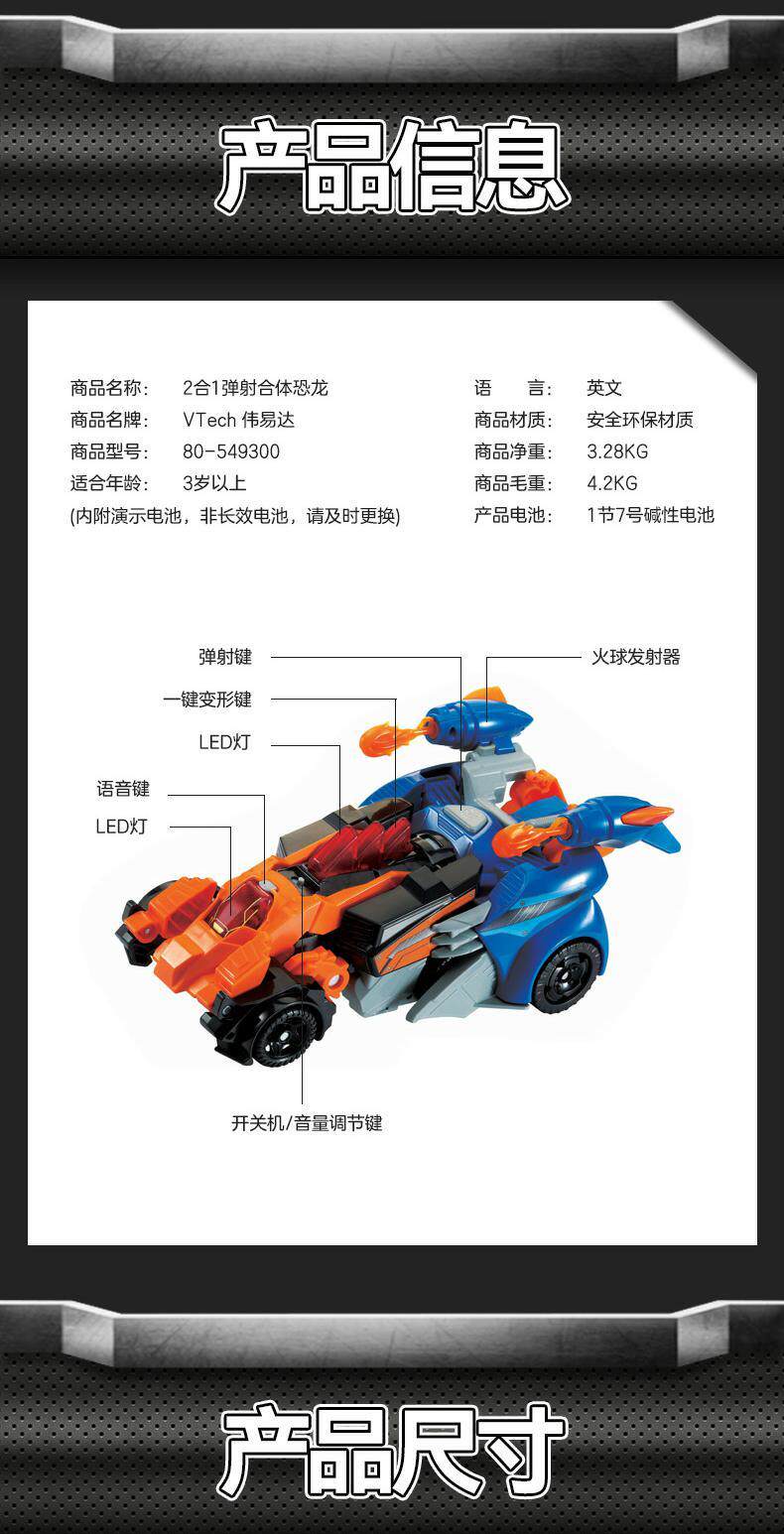 伟易达恐龙2合1合体弹射变形恐龙战车智能声光互动儿童玩具22578