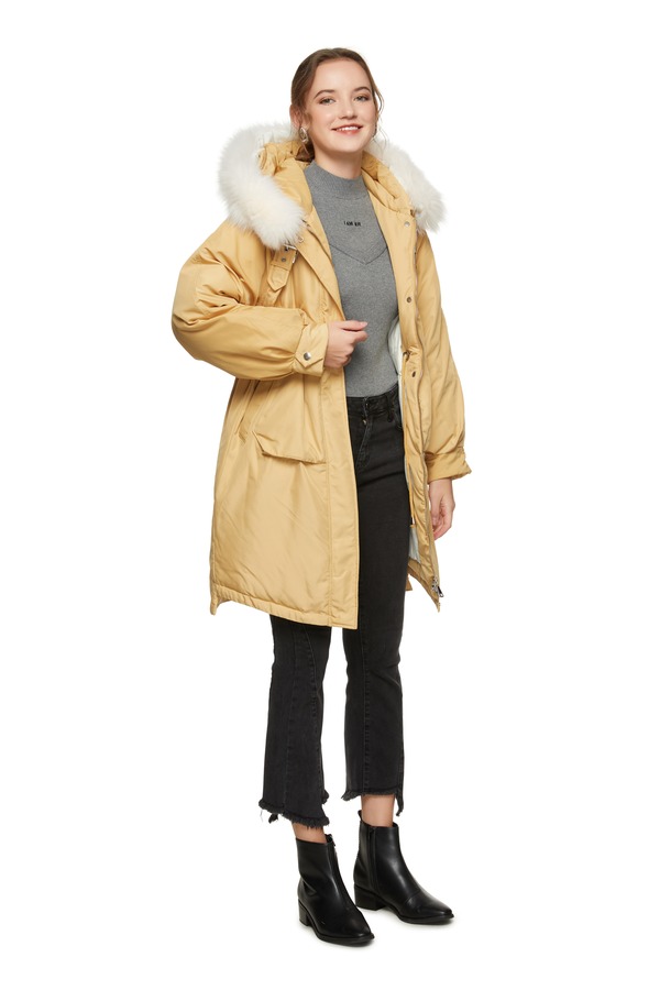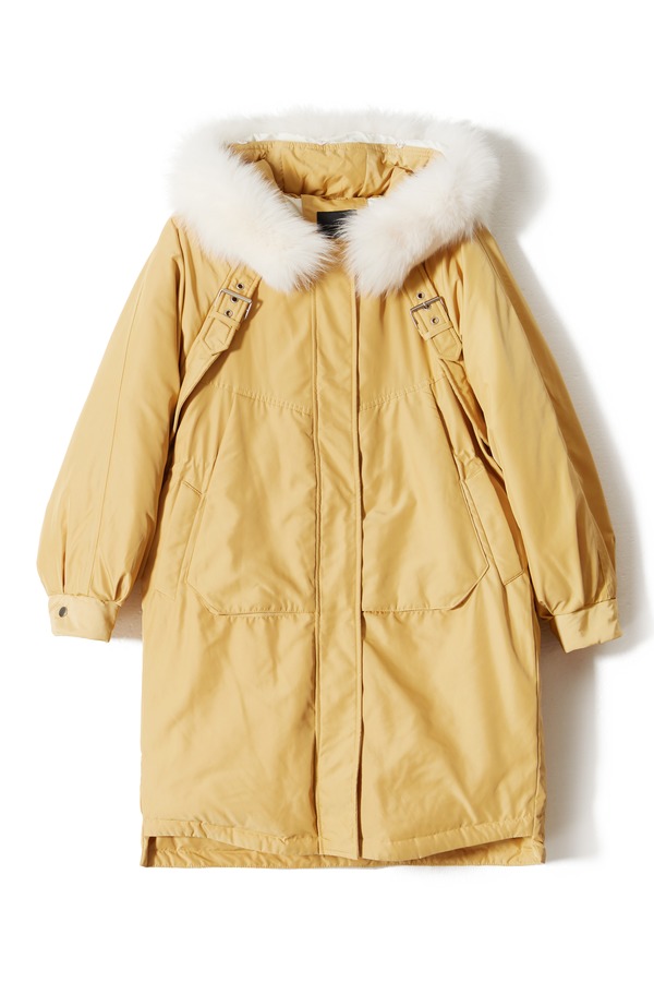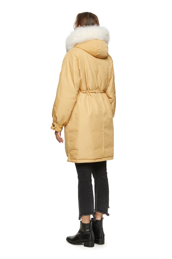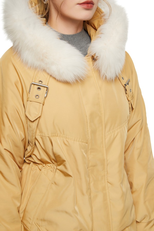 AUGUST 1 EIGHT 黄色抽绳收腰毛领羽绒服 8420