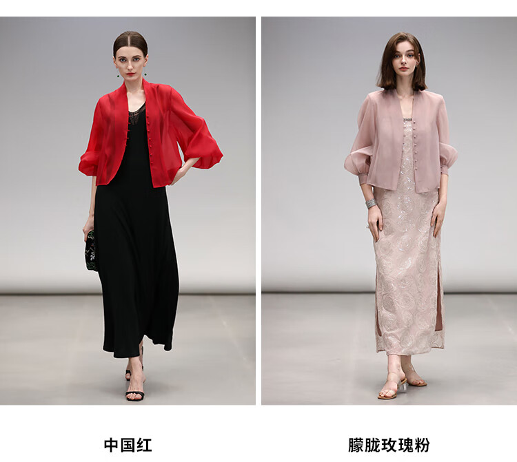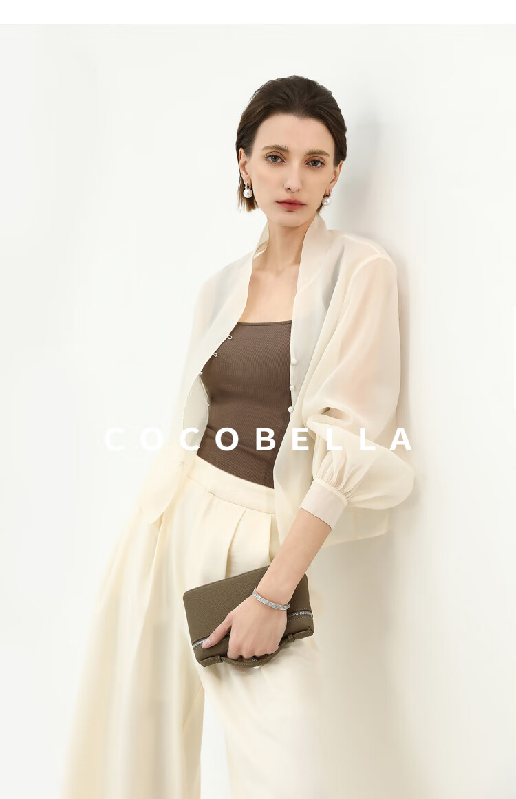 COCOBELLA新中式灯笼袖遮阳短外套国风衬衫空调衫SC3080-4