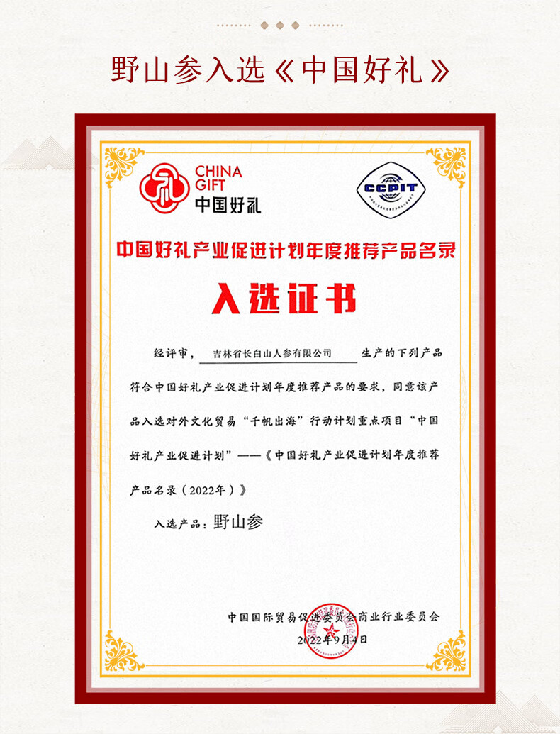 - 吉林省政府授权:“长白山人参”全国独家品牌运营商。主要经营长白山人参有关产品和长白山特产类产品