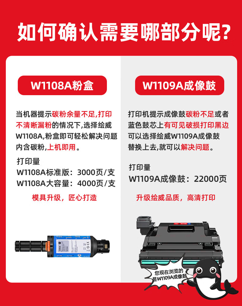 绘威W1108a粉盒 W1109A成像鼓 适用hp惠普1005w墨粉 108a粉盒 HP laser NS mfp 1020w/n ns1005c 1005n/c 打印机硒鼓闪充碳粉