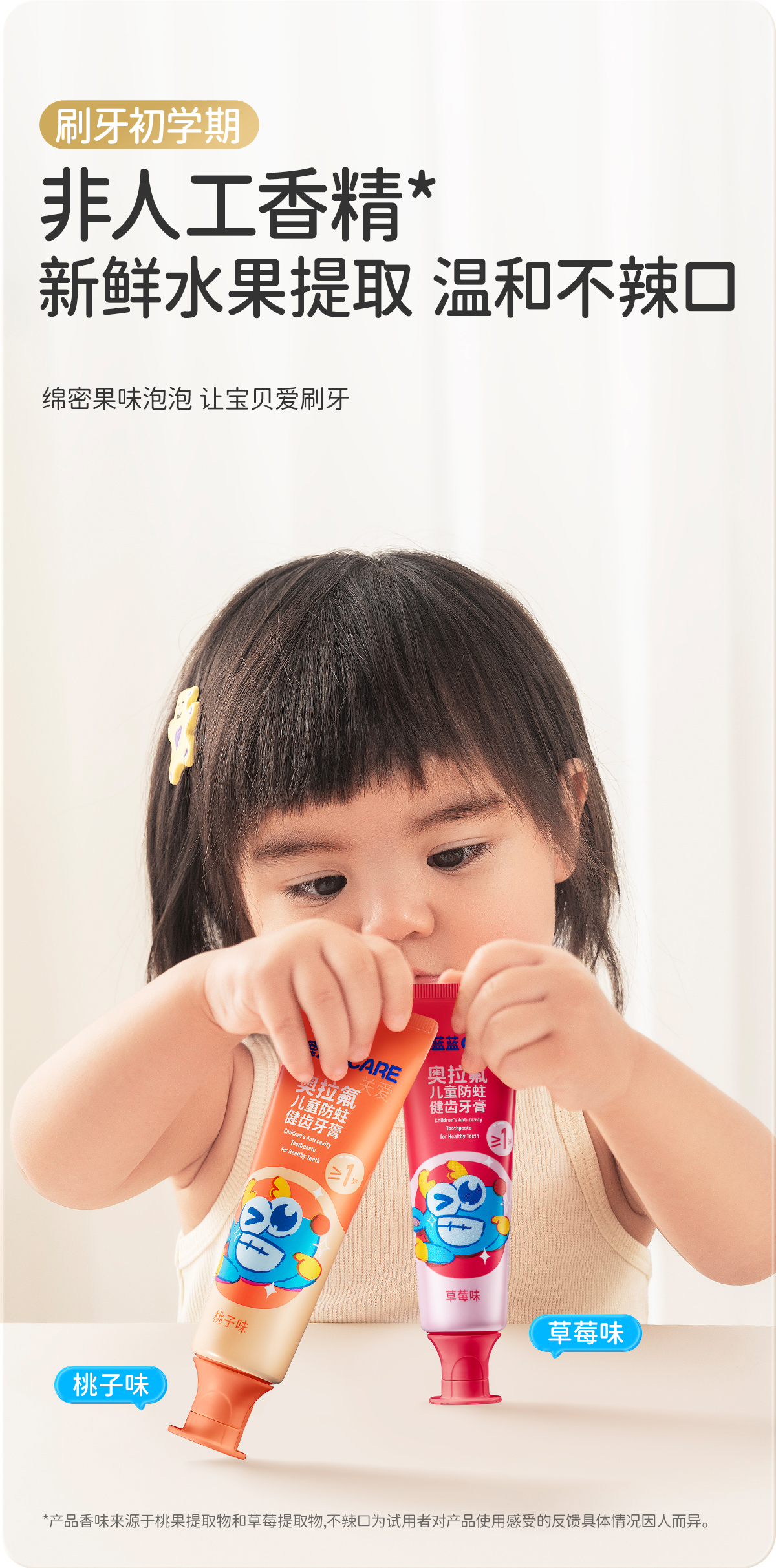 【赠牙刷】【“锌”一代儿童奥拉氟牙膏】1岁+含氟防蛀健齿不辣口