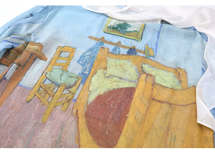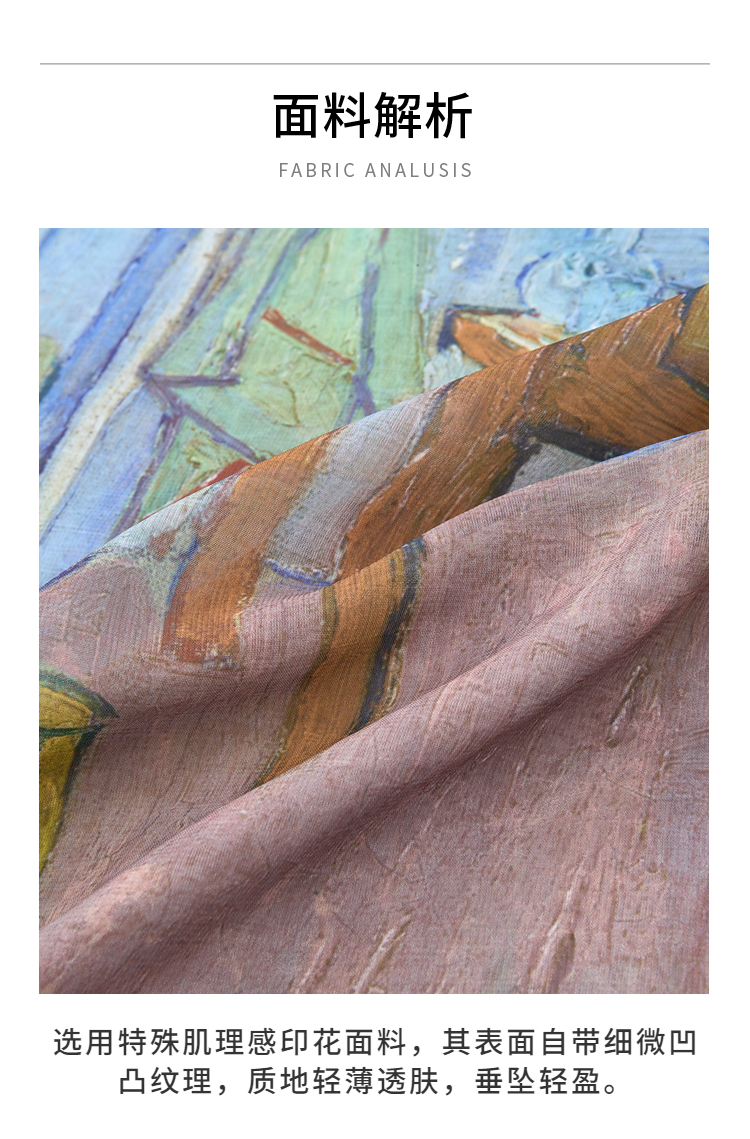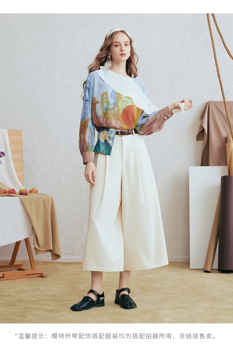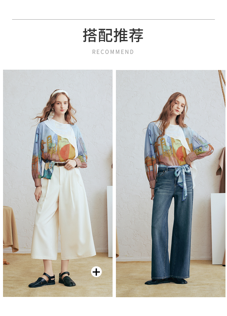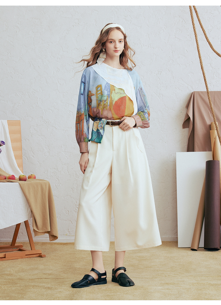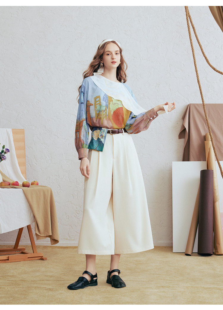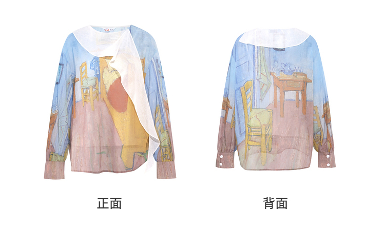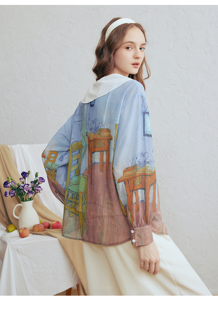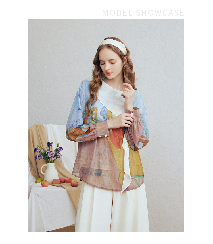 两三事梵高文艺 初晴烟雨 2026春季新款飘带拼接两件套印花衬衫女
