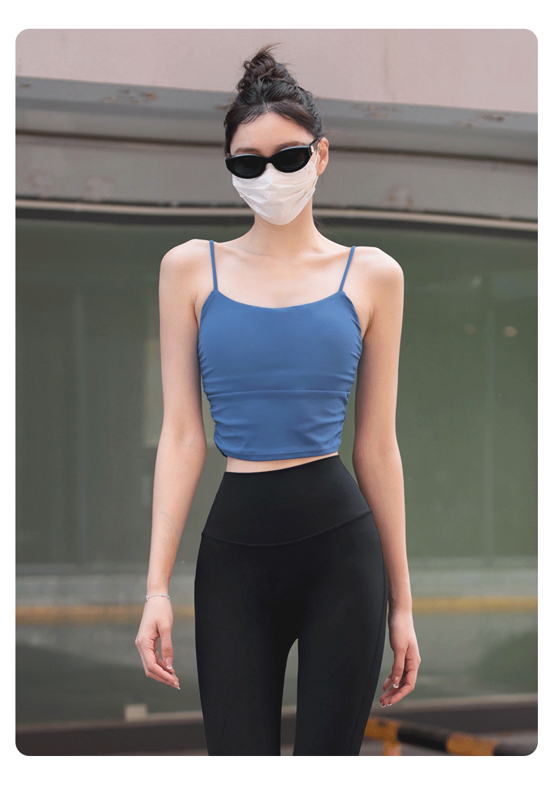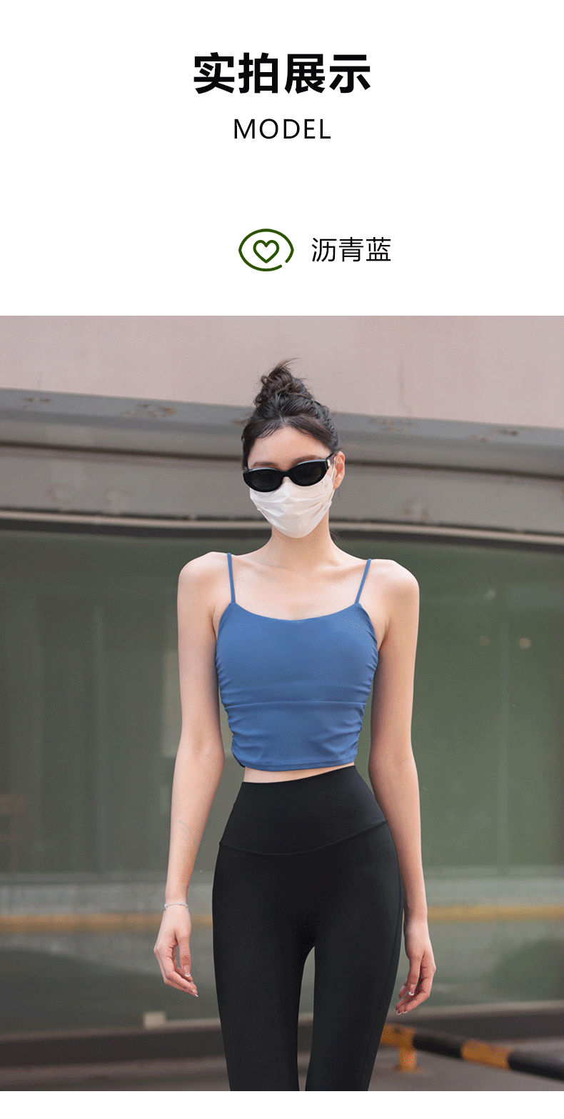 beemen褶皱收腰瑜伽背心 吊带运动内衣 健身普拉提背心 舒适不勒 立体承托
