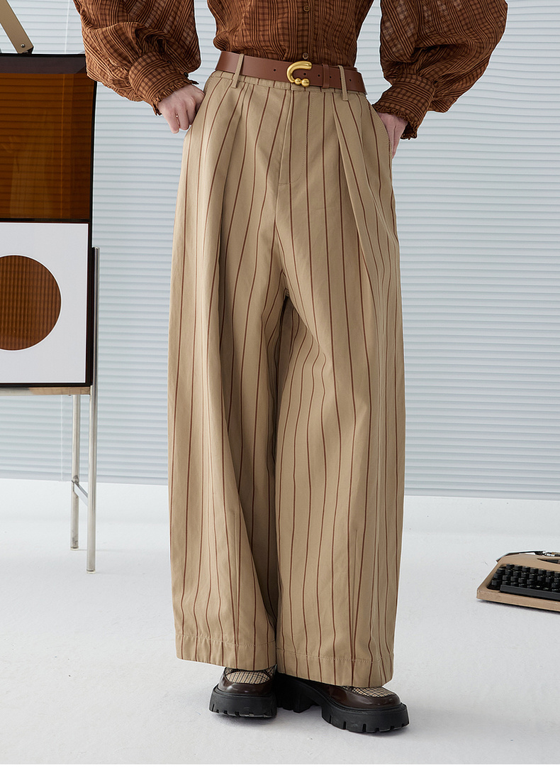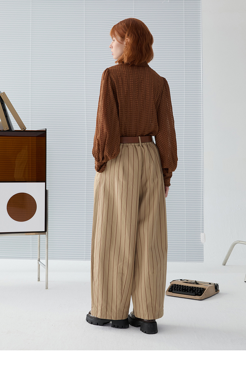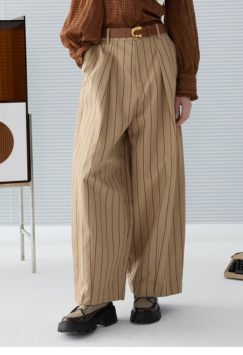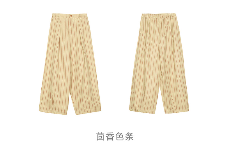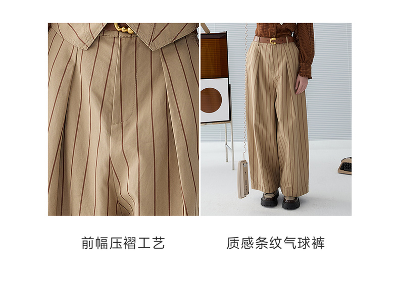 谜底气球裤长裤女2025春新品复古风条纹休闲大廓形裤子251MK0046
