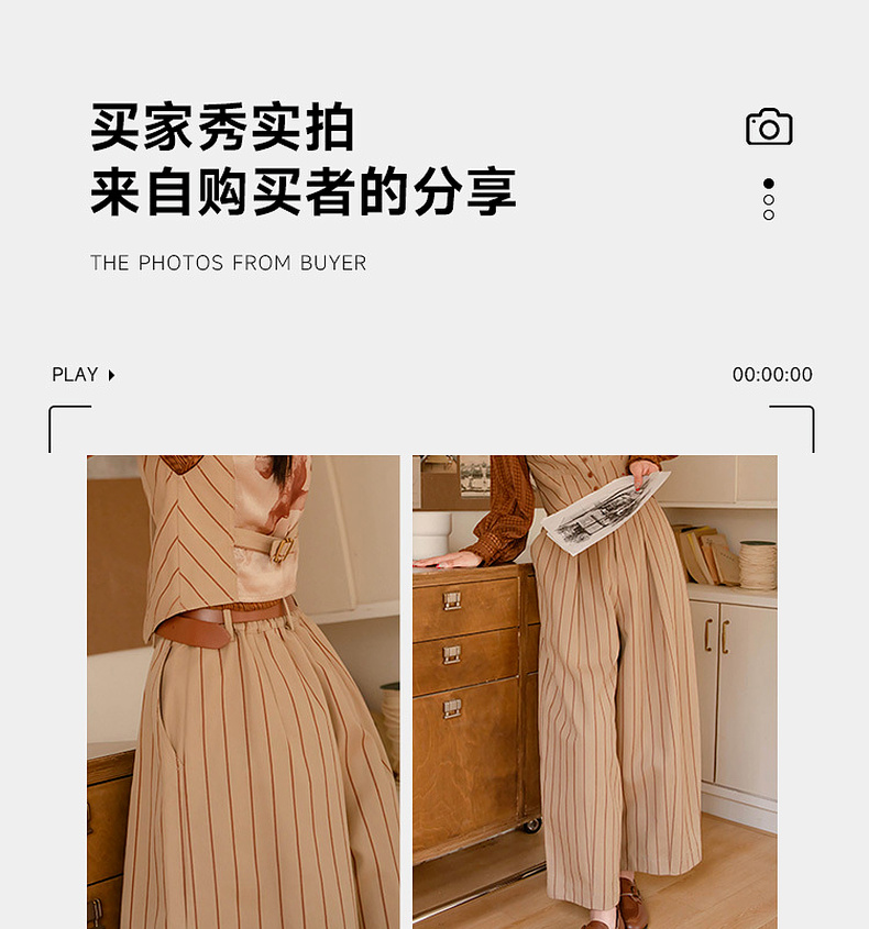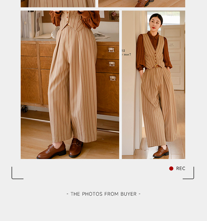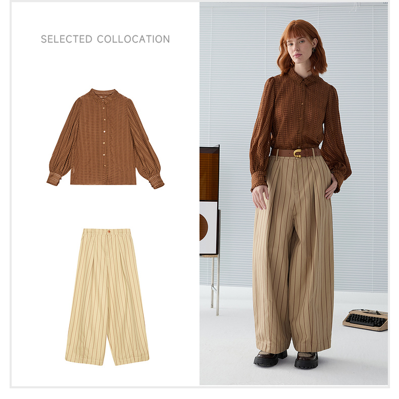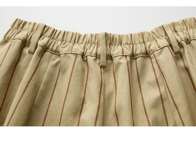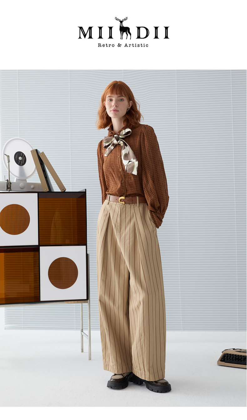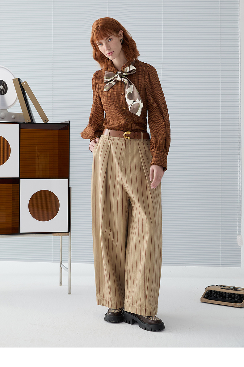 谜底气球裤长裤女2025春新品复古风条纹休闲大廓形裤子251MK0046