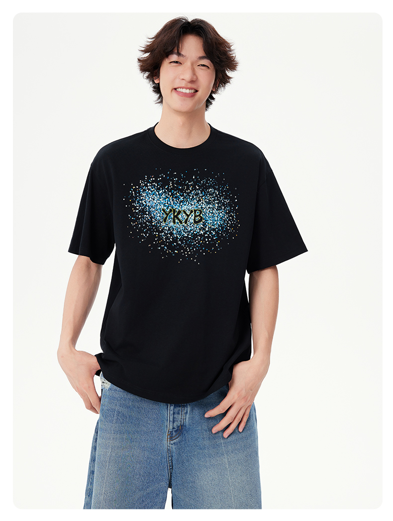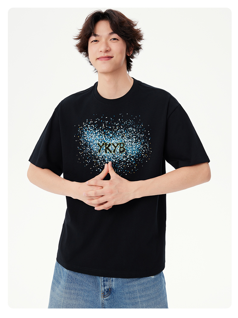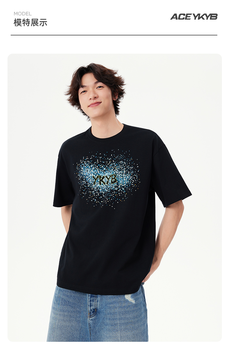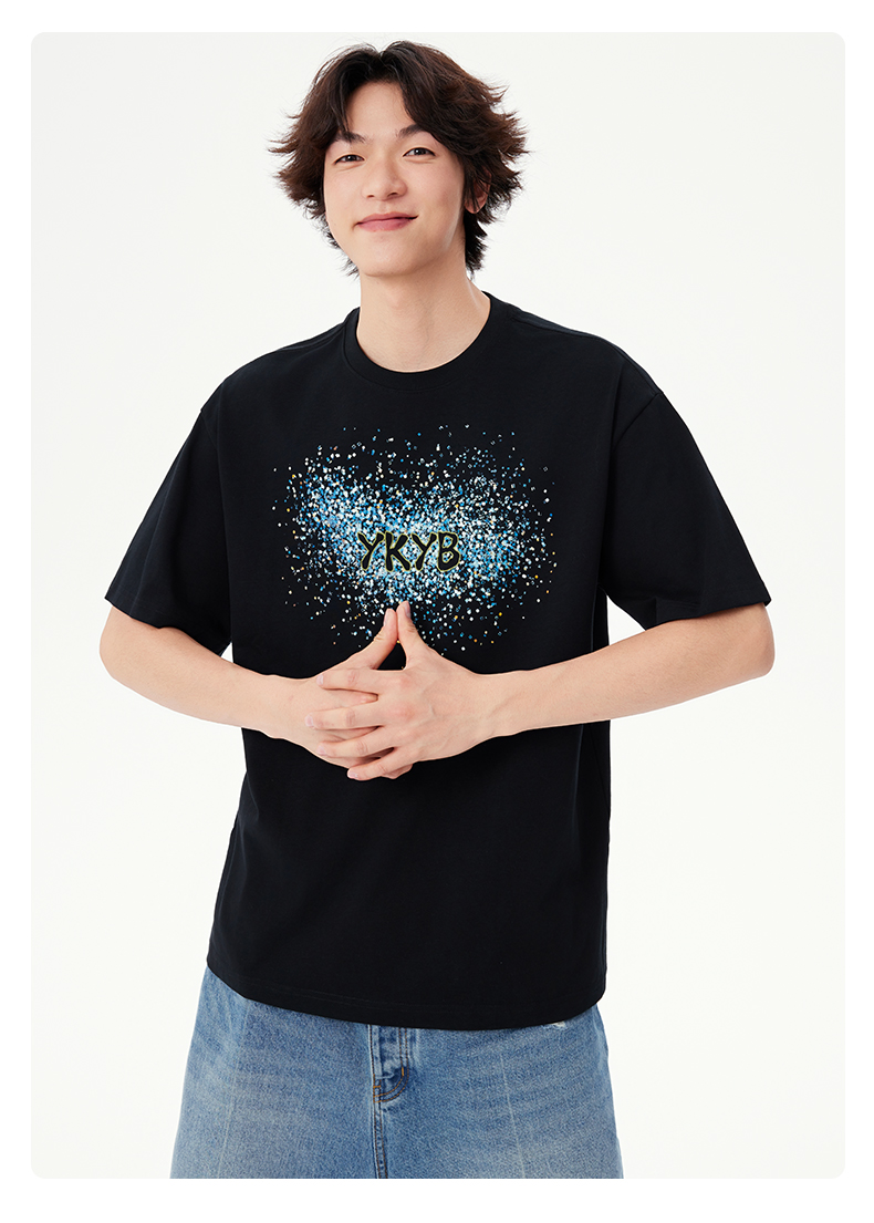 YKYB黄子韬短袖T恤全棉舒适透气手绘满天星印花重工上衣Y52NDT026