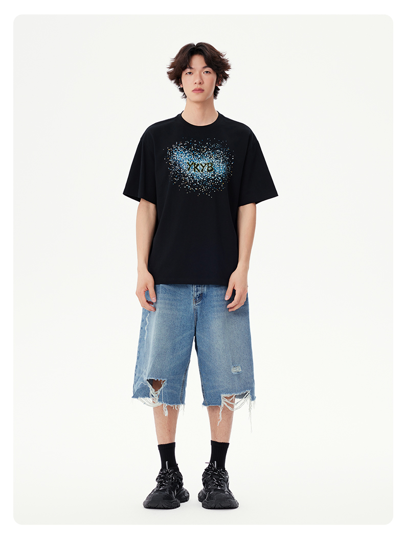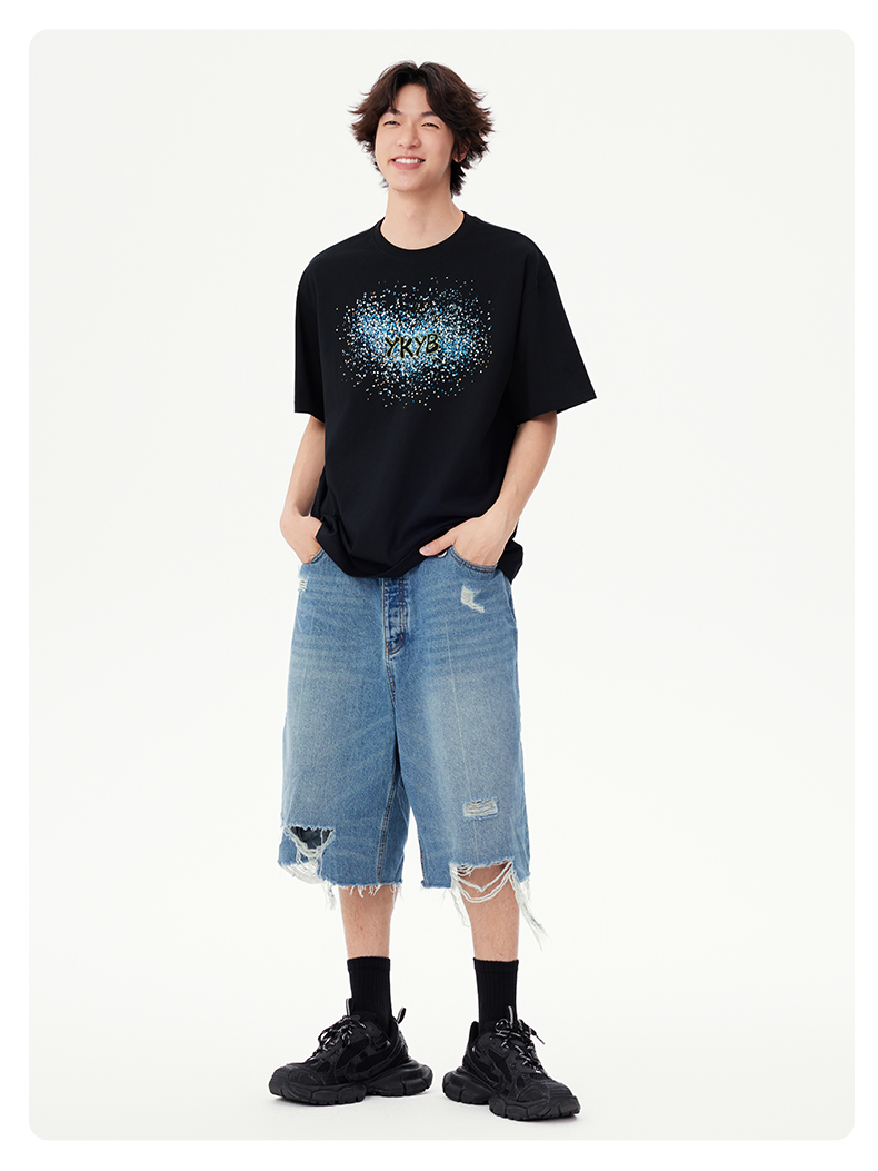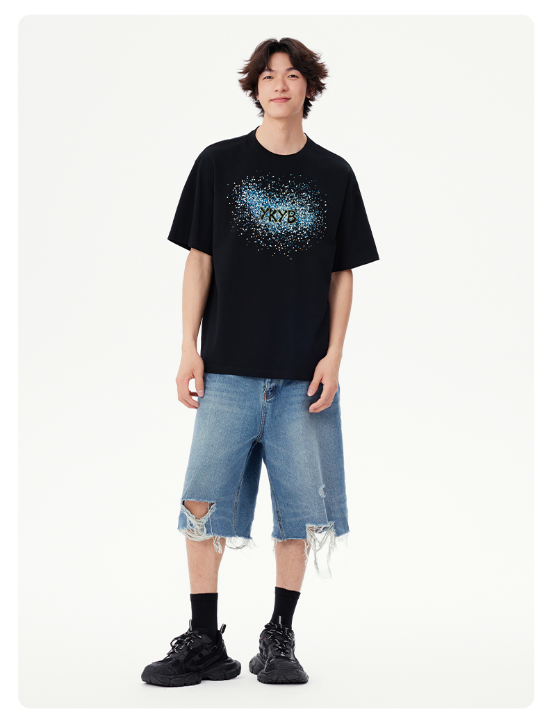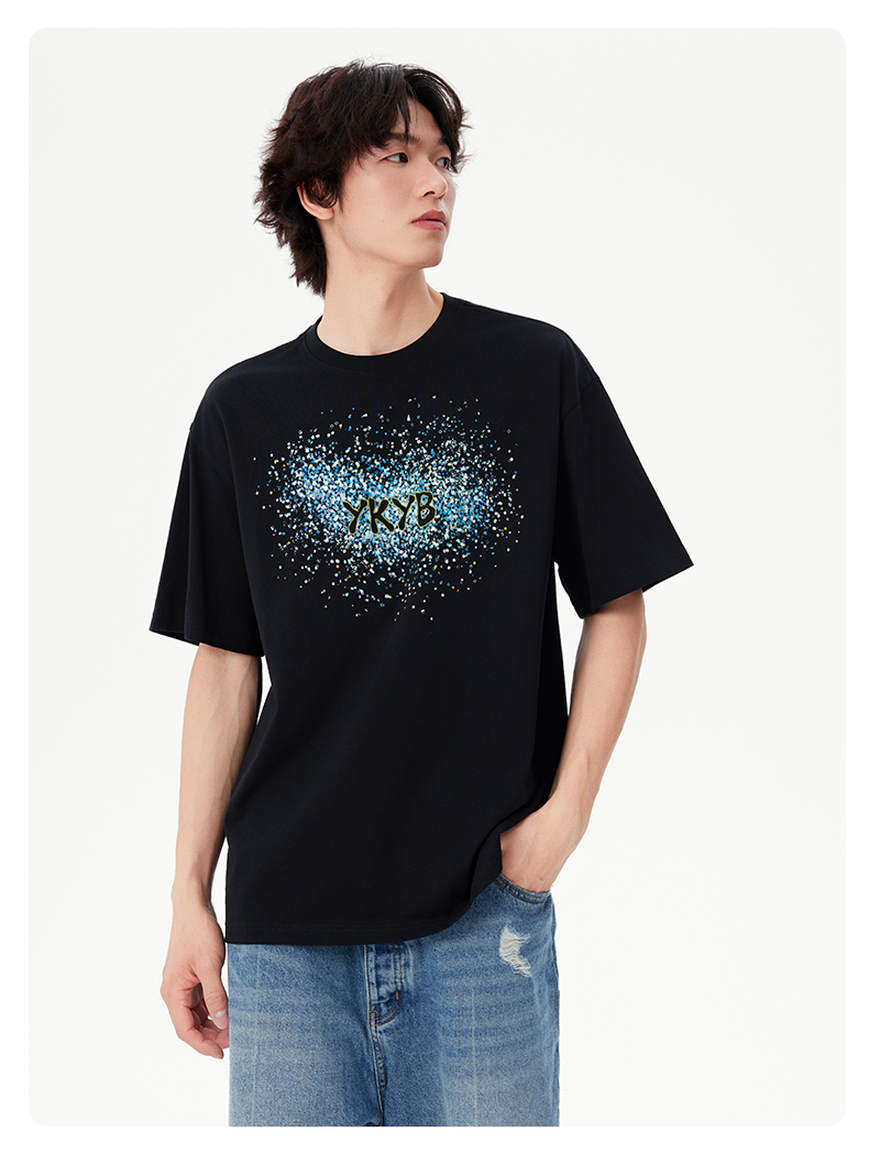 YKYB黄子韬短袖T恤全棉舒适透气手绘满天星印花重工上衣Y52NDT026