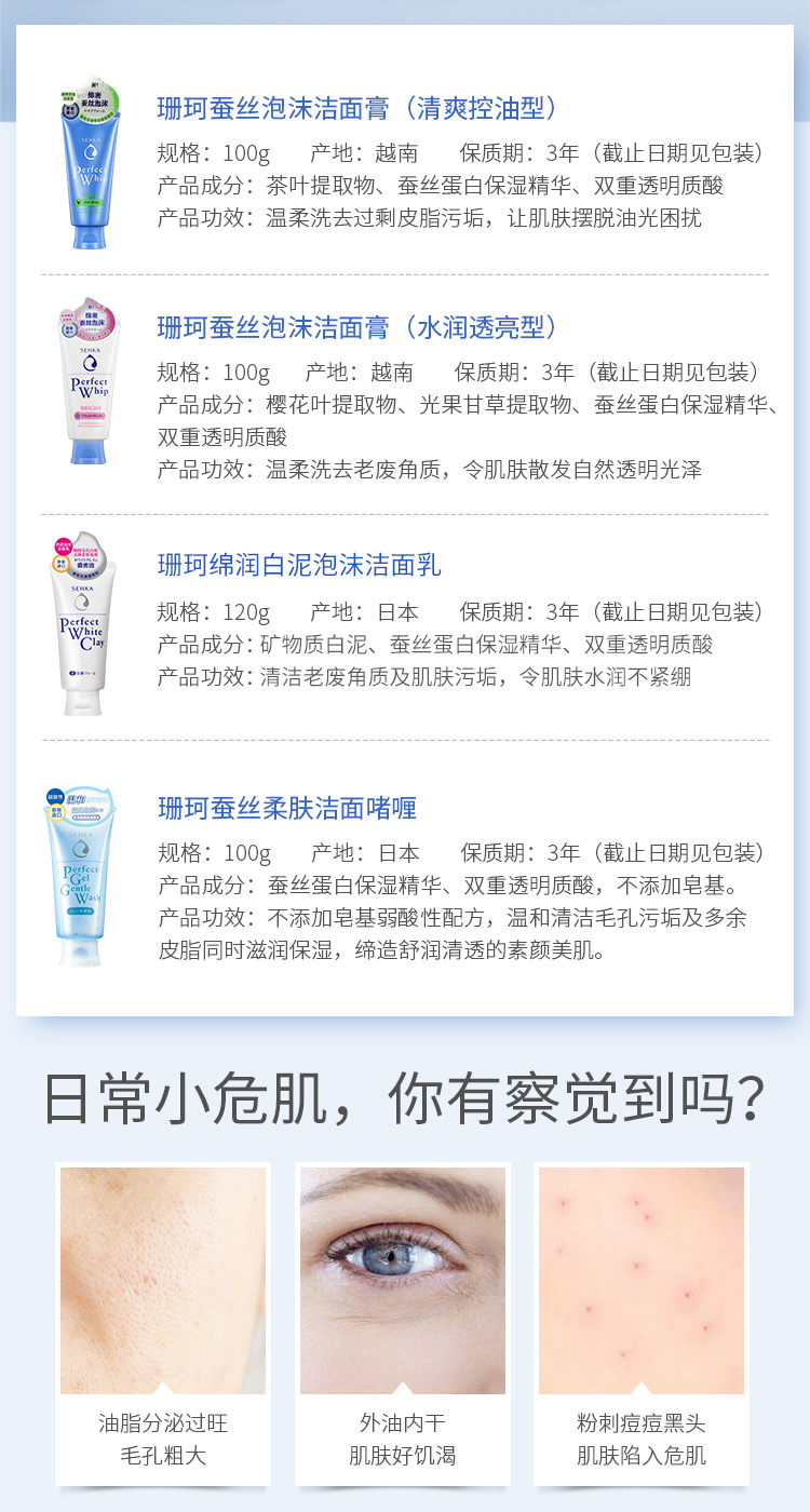 珊珂 蚕丝泡沫洁面膏清爽控油型/水润透亮型100g