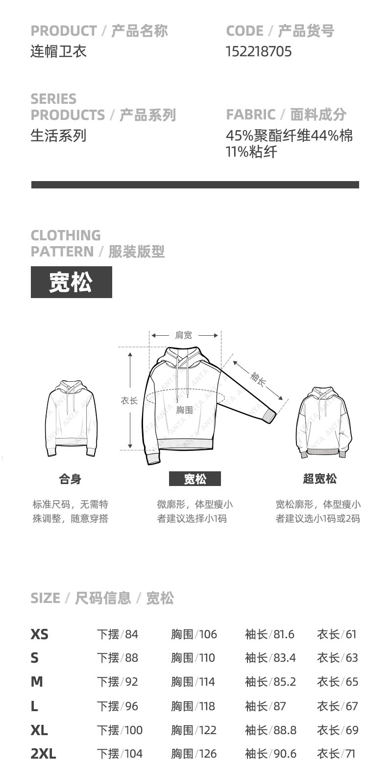 安踏连帽卫衣2021冬季新款情侣运动套头宽松长袖针织衫152218705