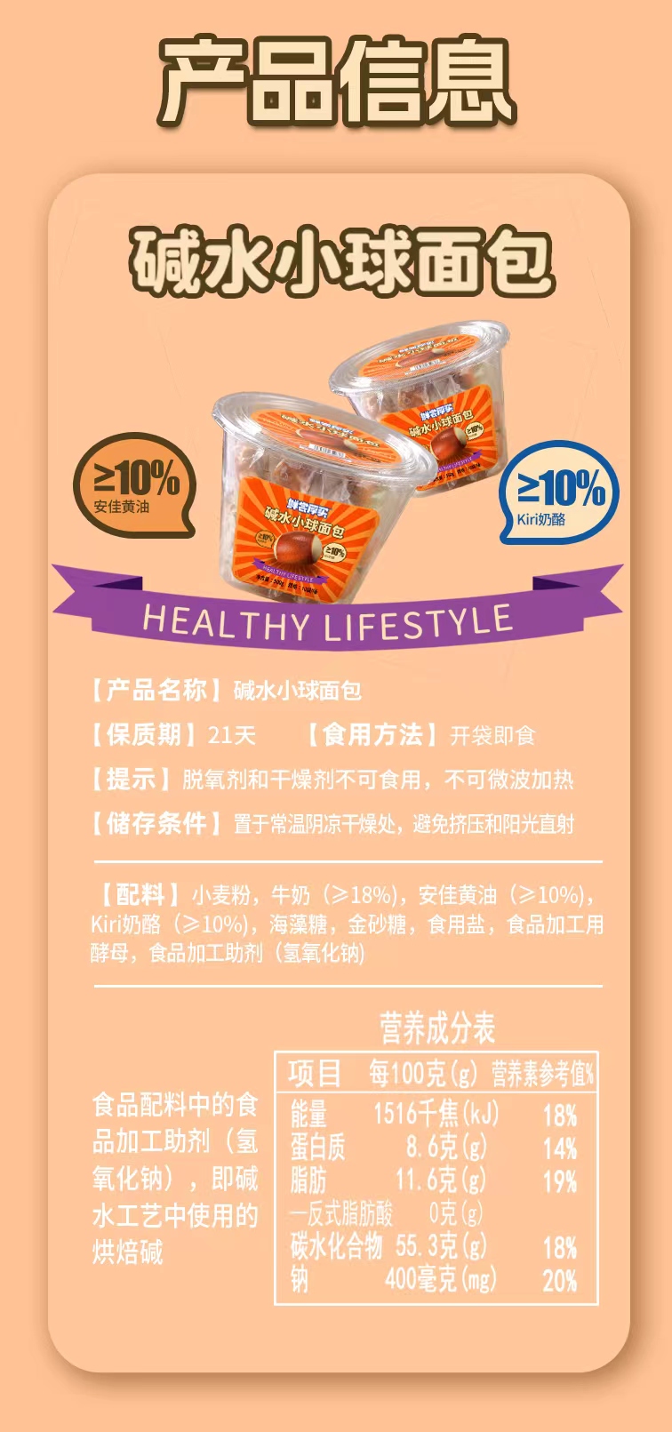 鲜尝厚买 碱水小球面包 500g*2