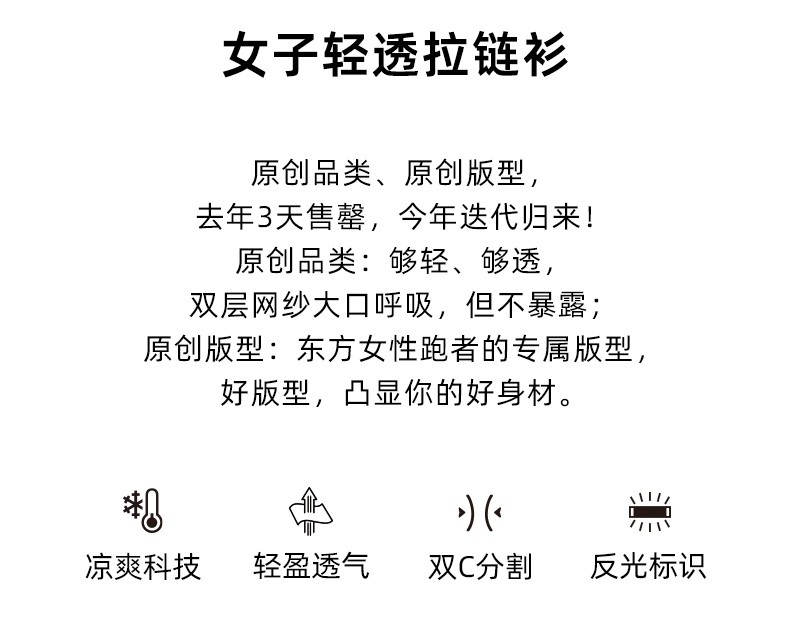 原创单品 | 马孔多女子轻透拉链衫 凉感 双层网纱透气 浮水 双C分割 反光标