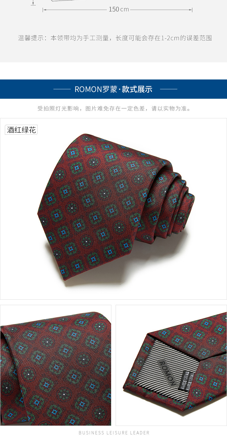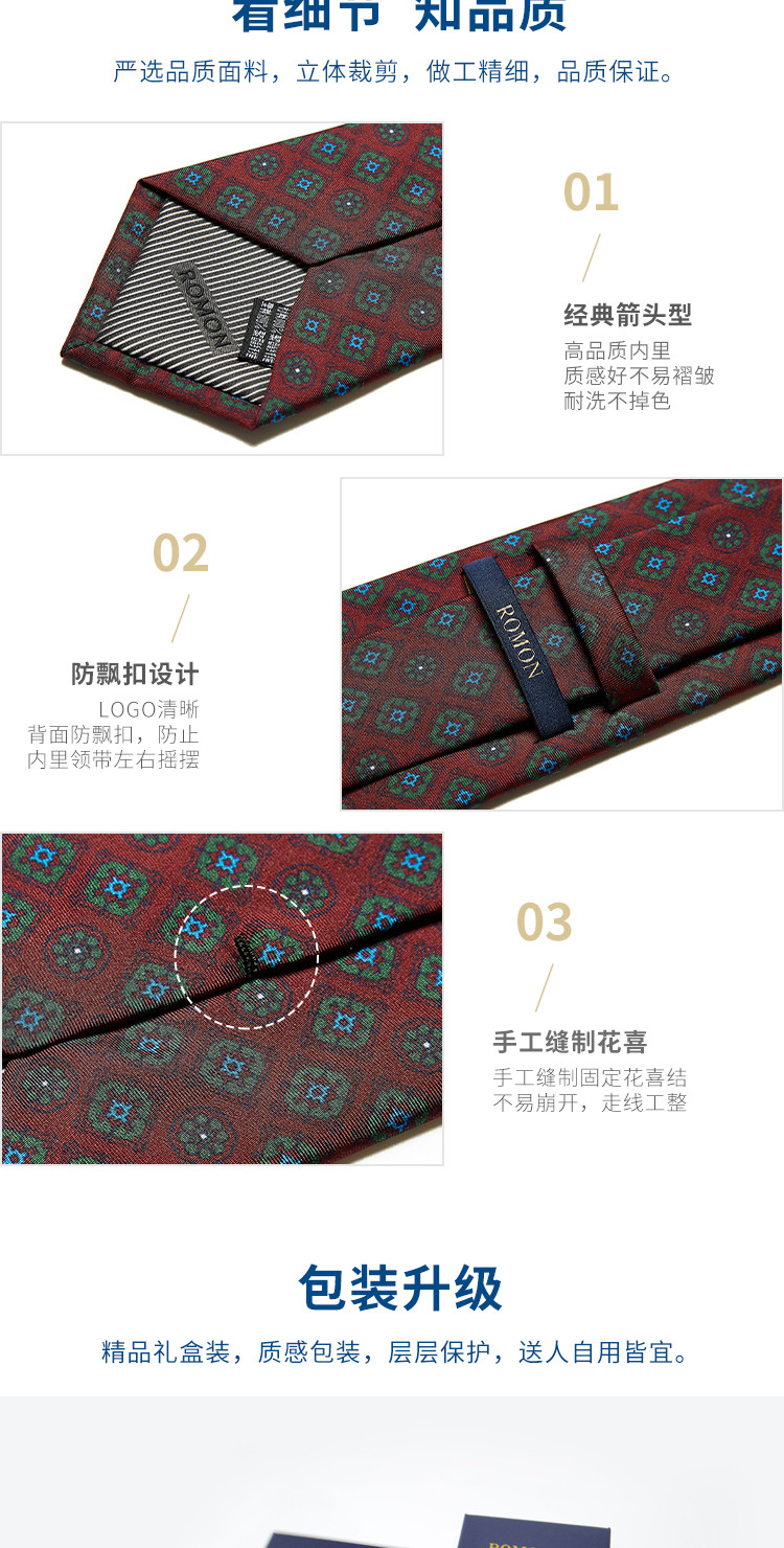 【桑蚕丝】罗蒙领带男时尚复古花纹商务正装婚礼新郎男士领带
