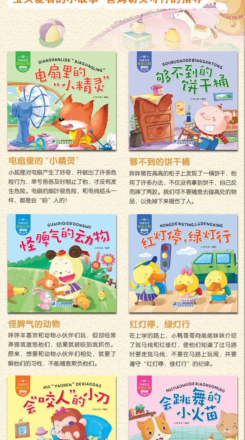 对于宝宝来说,生活中存在许多安全隐患:火、开水、小刀、桌角、电扇、马路上的车辆等,就算很细心的家长,面对突如起来的危险也是防不胜防。编者在此汇总了几种生活安全常识,归纳了一些实用的安全知识建议,以简单有趣的故事,教会宝宝认知,学习避开危险,供家长参考和借鉴。
