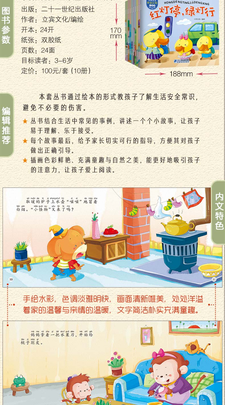 本套丛书通过绘本的形式教孩子了解生活安全常识,避免不必要的伤害。